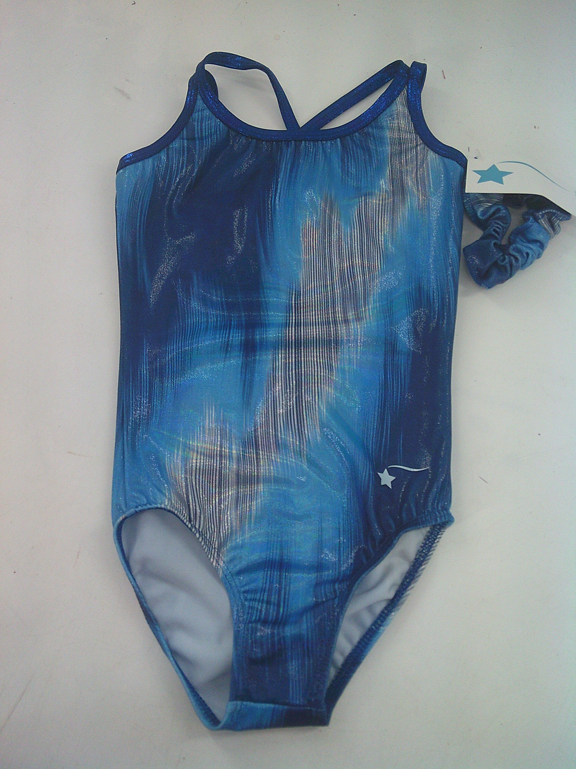 New Gymnastics Leotard Blue Silver Little Kid XS Child
