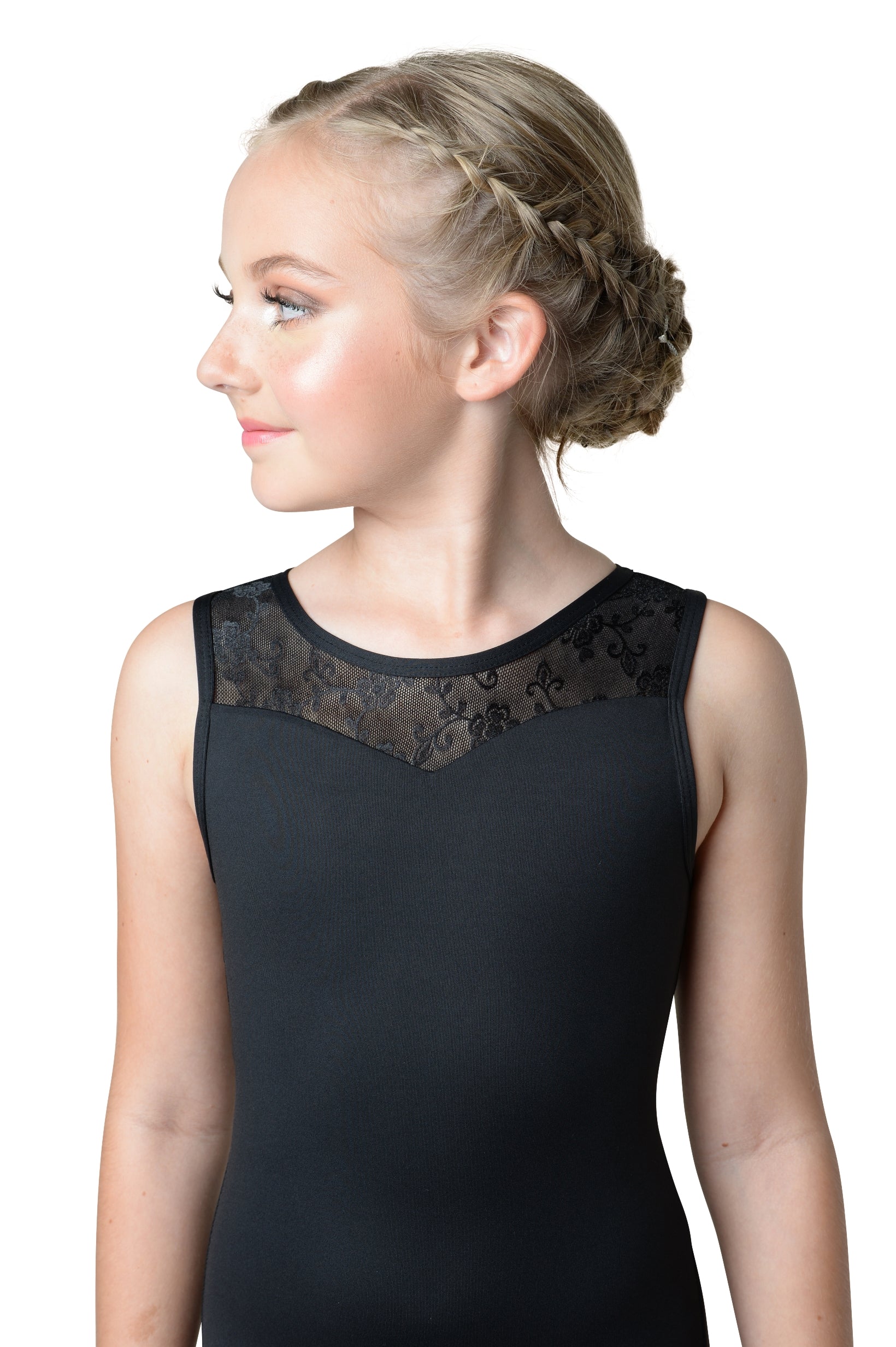 "Paloma", our sweetheart neck leotard featuring beautiful jacquard mesh on front and back. The simple yet fashionable tank leotard has a double keyhole back with clasp closure. Full front lining. Nylon/Spandex