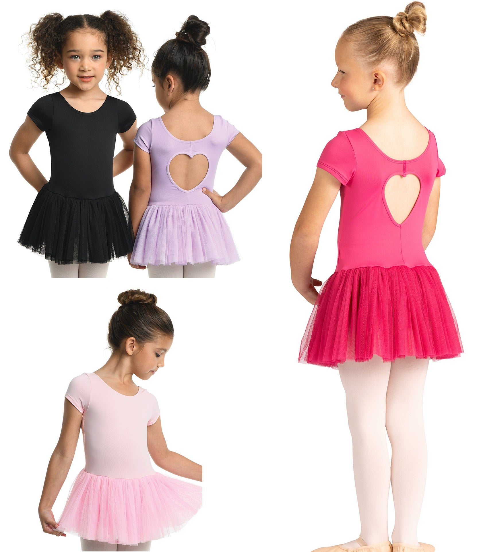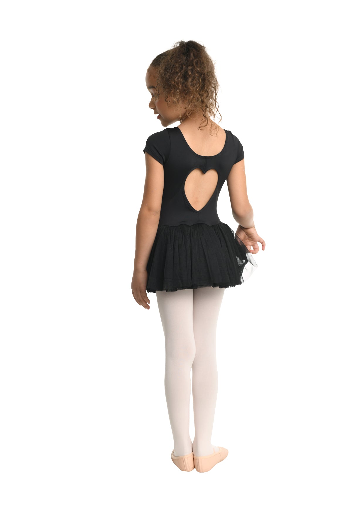 23209C - PENNY DRESS Basic full skirted cap sleeve dress with scoop front neckline features a heart cut-out back and a full tulle skirt. Fully front lined. Nylon/Spandex.