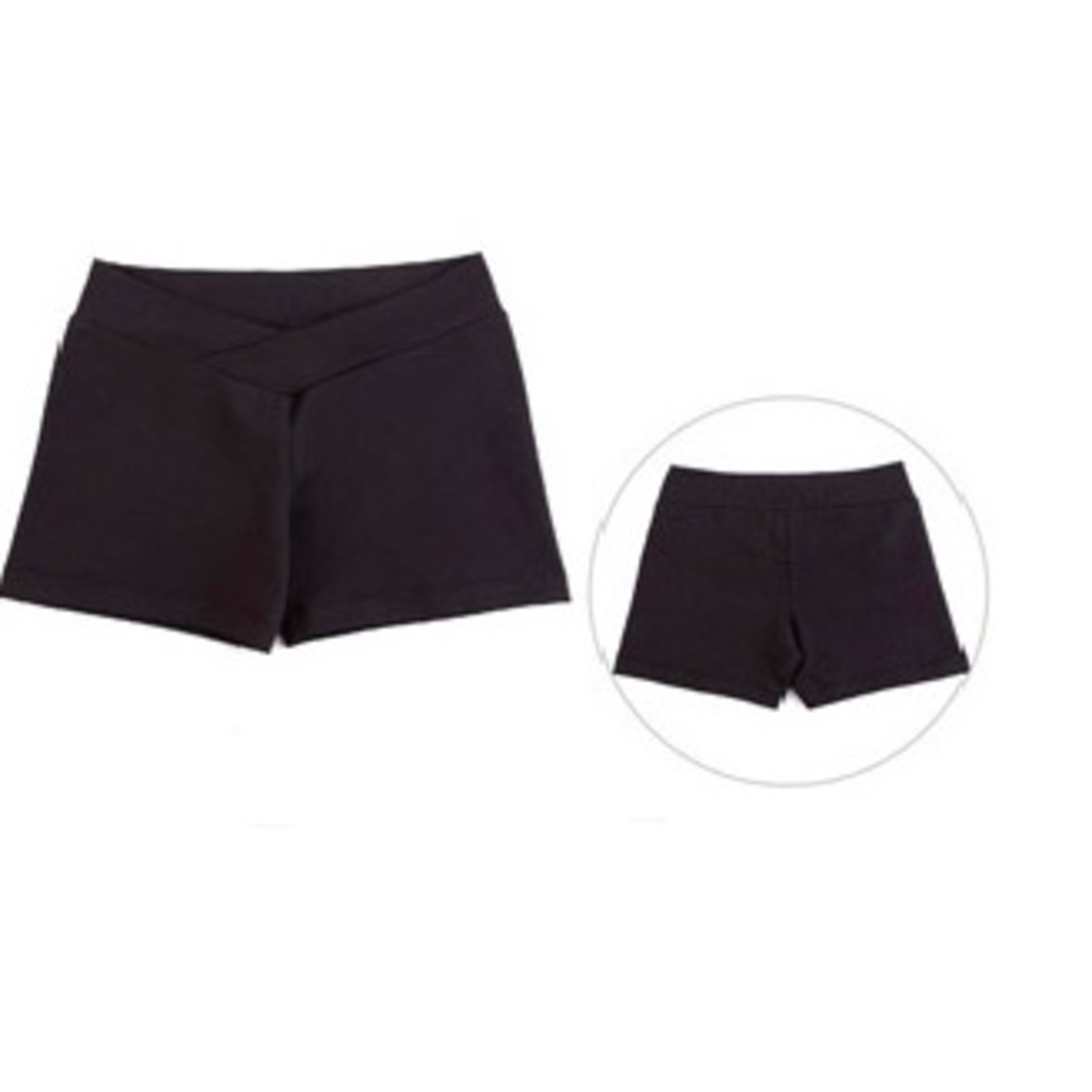 Great For: Jazz Hip Hop Tap Cheer Features: Spandex Spandex shorts with v overlapping waistband