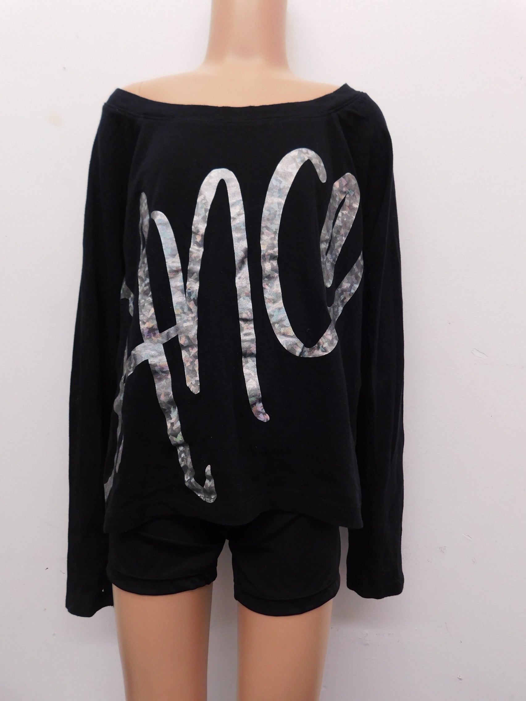 Dance Long Sleeve Shirt with the word "Dance" in shimmer letters with the back cut out from the shirt
