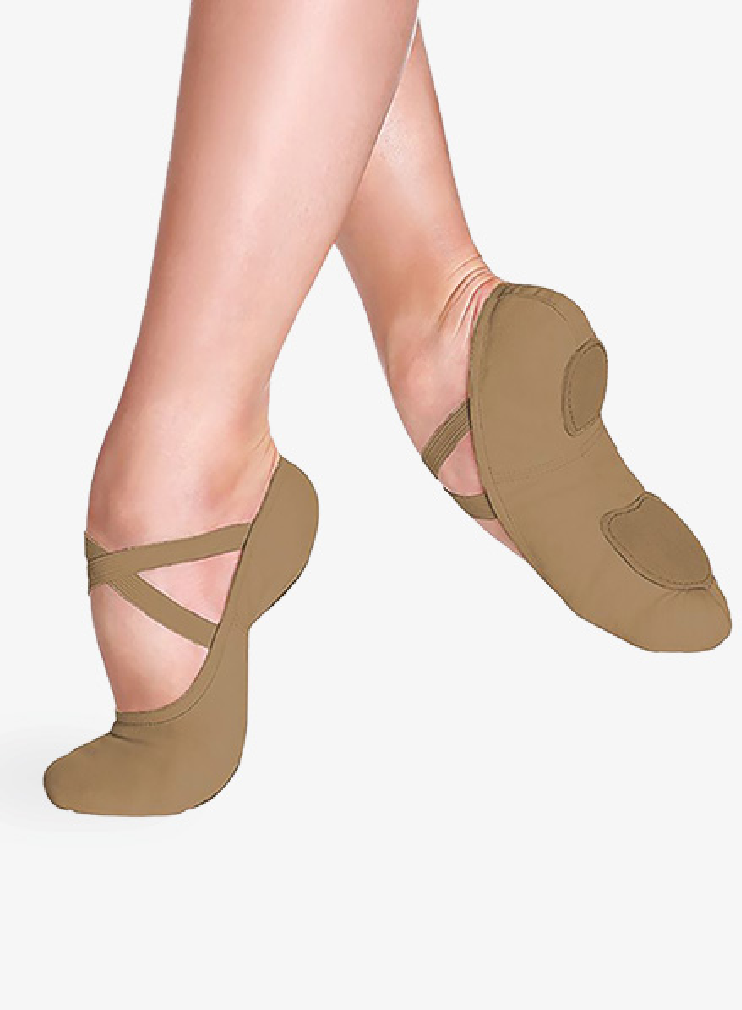 Features: Stretch Canvas Crossed Straps Split Sole No Tie Elastic