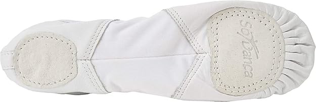 Style SD110S superpro by So Danca. Fully elasticized leather ballet shoe. Amazing adherence to the foot with nylon spandex insert under the arch, contouring the arch and toes perfectly. A single, reinforced seam down the centre lays flat against the foot, creating a sculpted fit with absolutely no bulk of excess material at the arch. Elastic binding replaces both drawstring and casing.