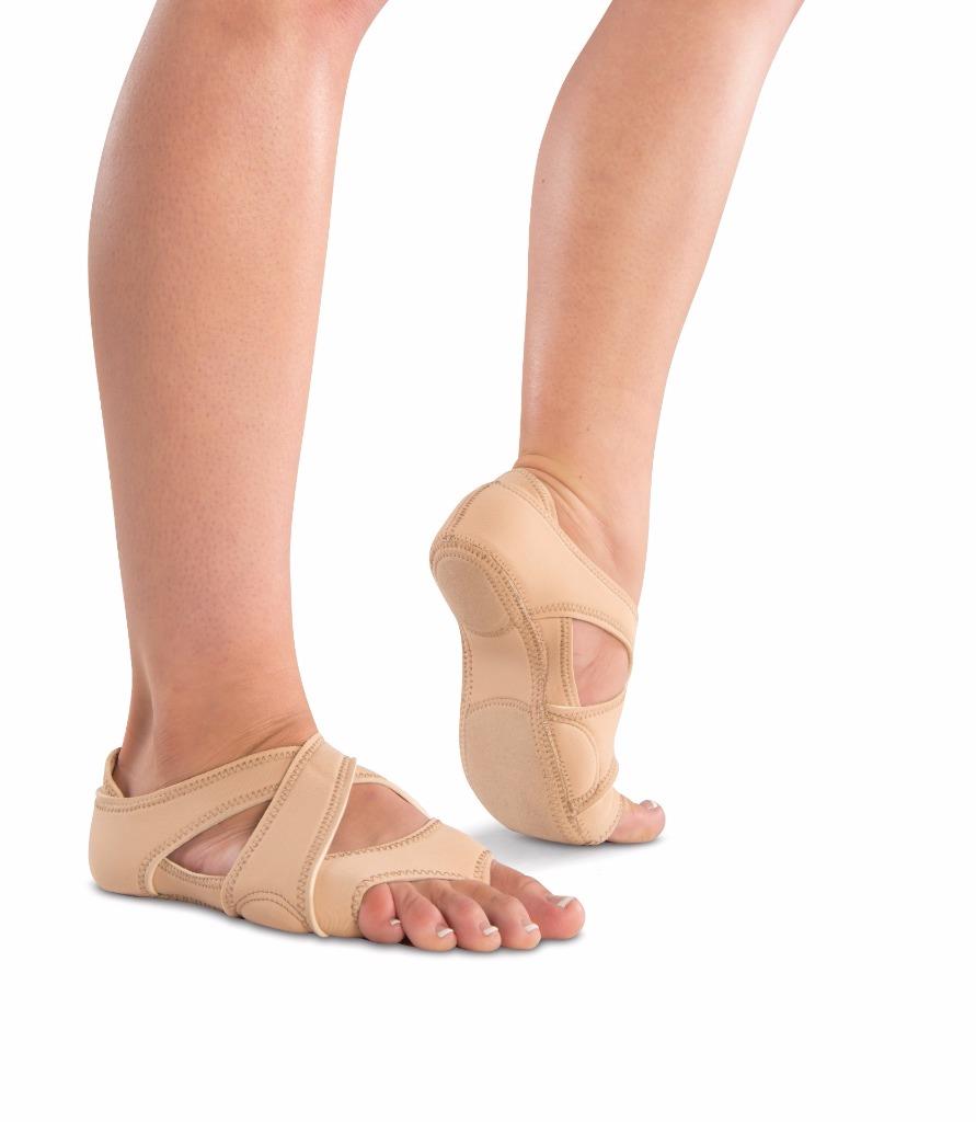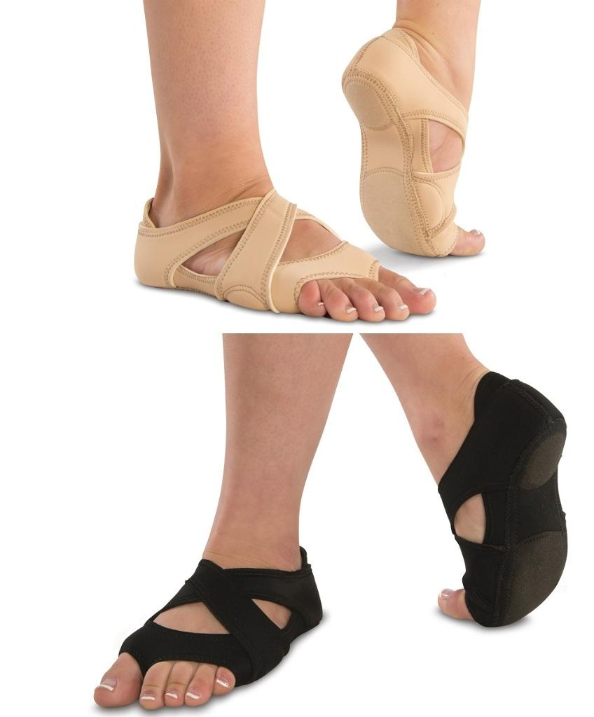 Protection for the foot with a barefoot feel. Great for jazz, modern, lyrical dance, and praise dance. Neoprene material ensures a snug and secure fit. Easy slip on and off design with no laces.