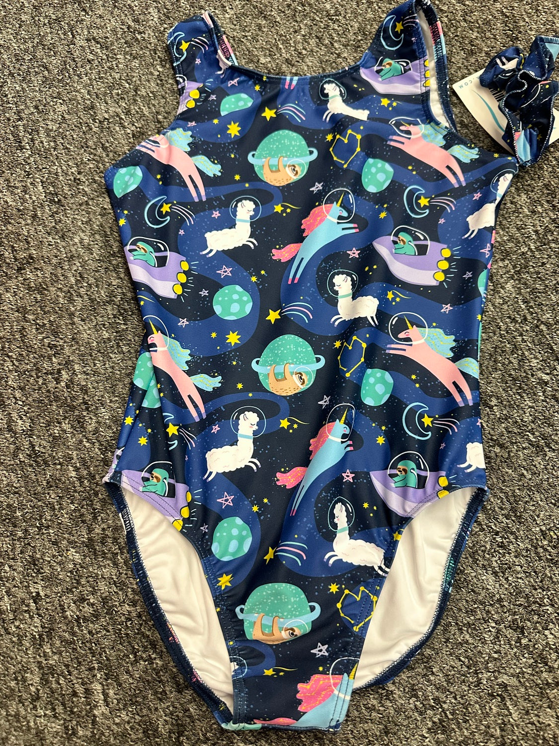 New Gymnastics Leotard Blue Llama Unicorn Space Child Sizes