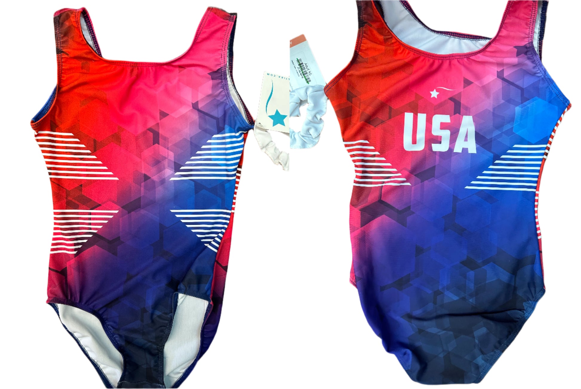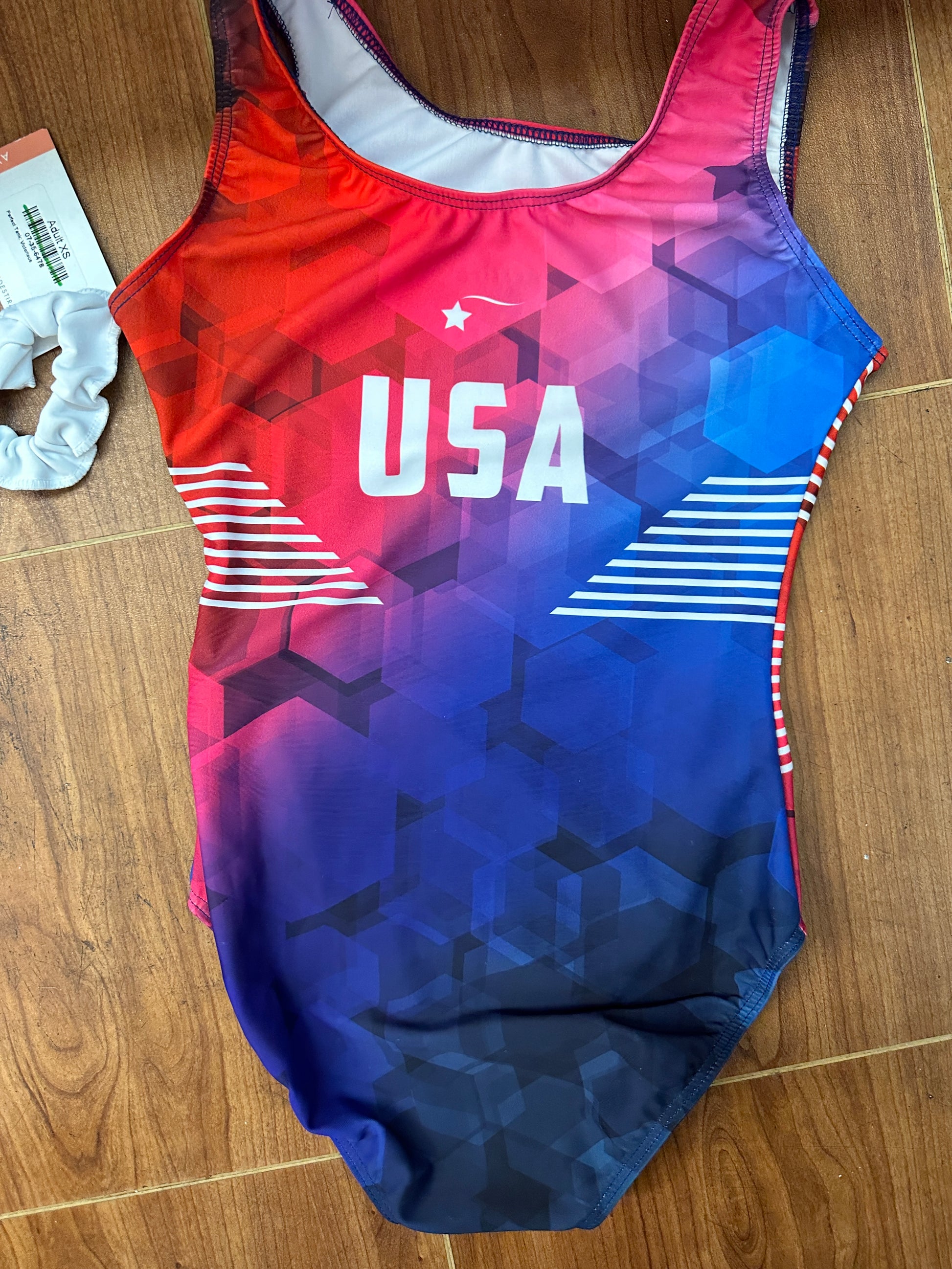 New Gymnastics Leotard Destira Victorious USA Adult XS and Small Includes Scrunchie