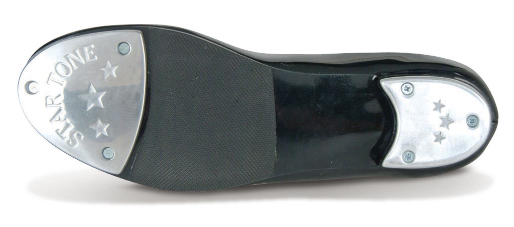 Man made upper and sole with sewn in elastic and grosgrain ribbon ties for a more secure fit. Full length padded plush sock lining. Cushioned heel counter for extra comfort. Nonskid traction pad. Star Tone toe and heel taps are secured with resonating boards.
