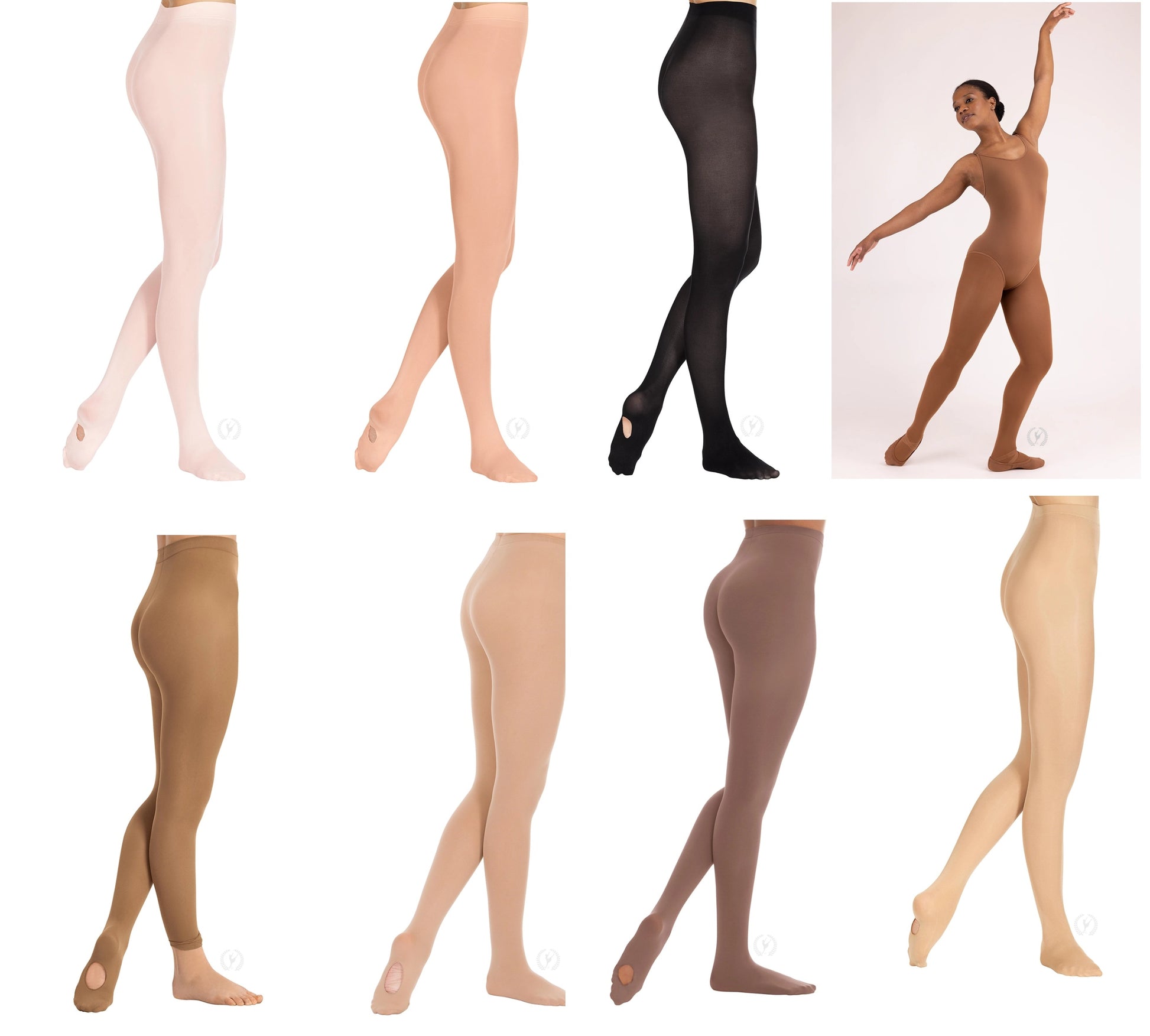 Seamless, microfiber, dance tights designed to resist running and pilling. TRUE NON-RUN® Tights prevent the threads from creating a run if damaged, making them more durable and longer-lasting than other industry standard tights. Enjoy endless hours of comfort through rehearsals and performances with our soft microfiber waistband - there's no hard elastic to pinch or squeeze you, so your silhouette will be smooth and your tights undetectable under leotards and costumes. The reinforced, flat sole opening of these convertible tights transition quick and seamlessly from a footed to footless style, perfect for changing in between classes. Additionally, EuroSkins® TRUE NON-RUN® Tights have long lasting, vivid color; so whether you are looking for pink ballet tights for pointe or tan dance tights for jazz, we have you (and your legs) covered!