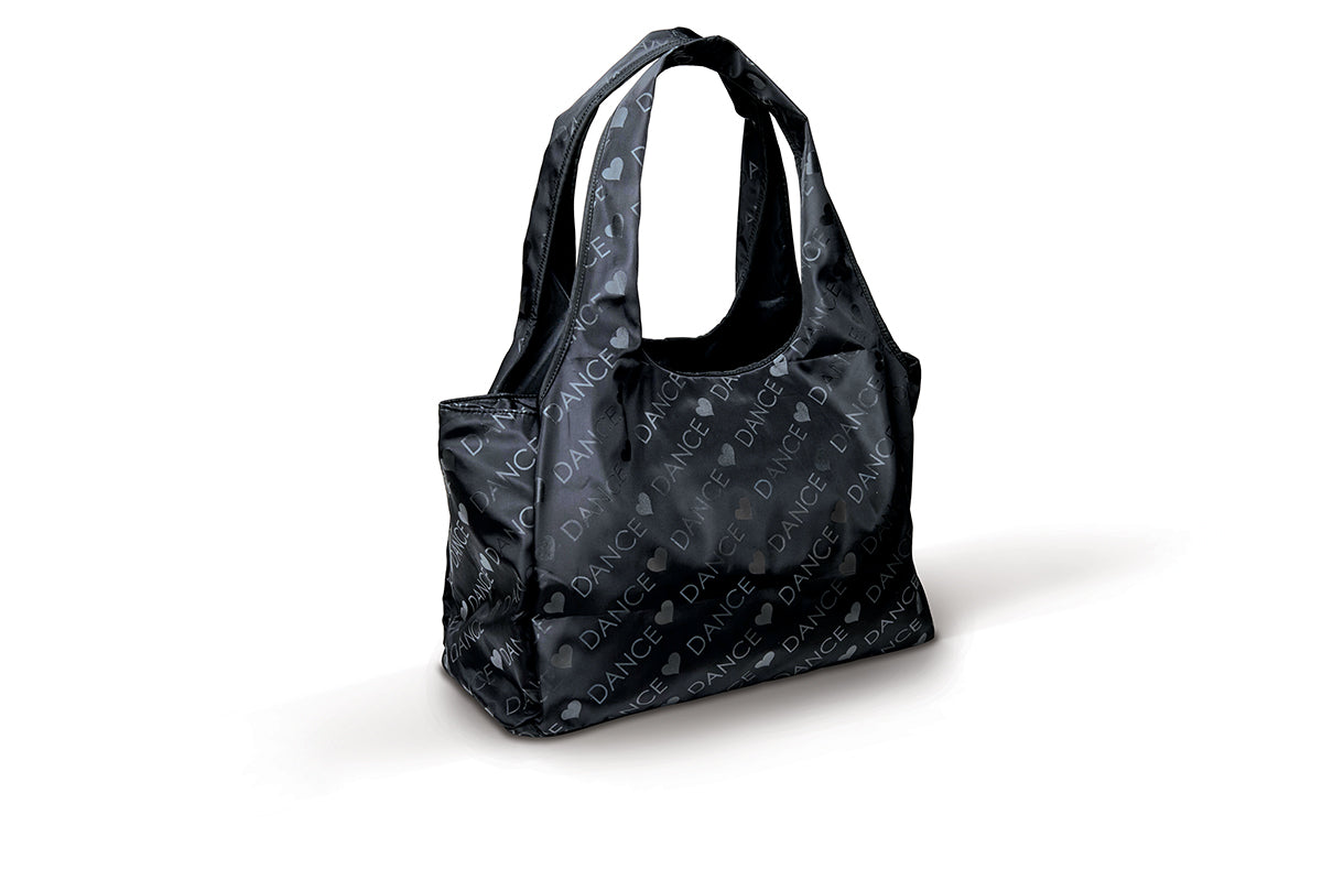 Sack style tote features comfortable handles, repeat tonal "Dance" pattern, side Velcro pockets, and inside zipper pocket. Bag is fully lined, lightweight and folds flat.