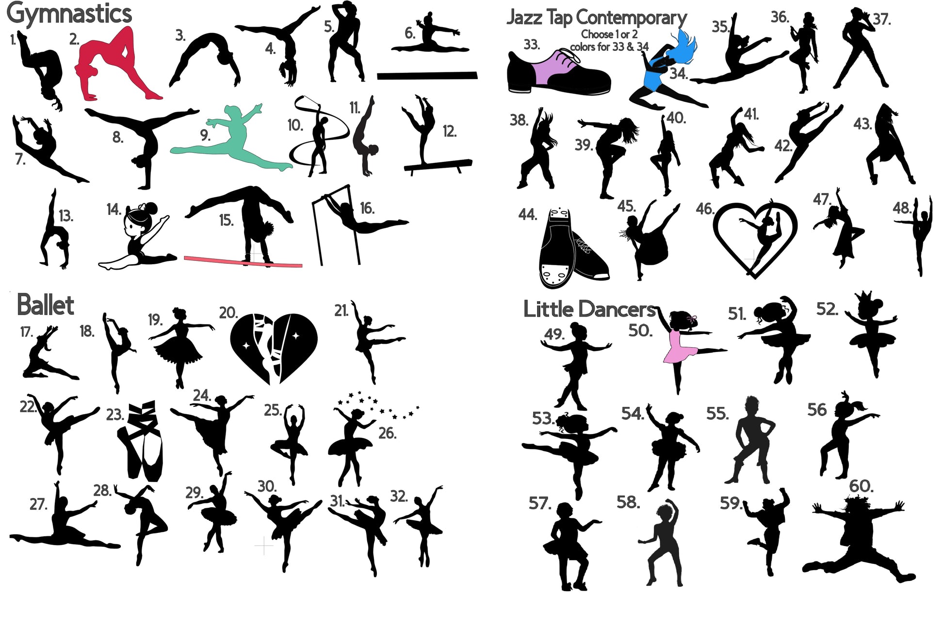 These can be for school or any activity - As dance is NOT preprinted