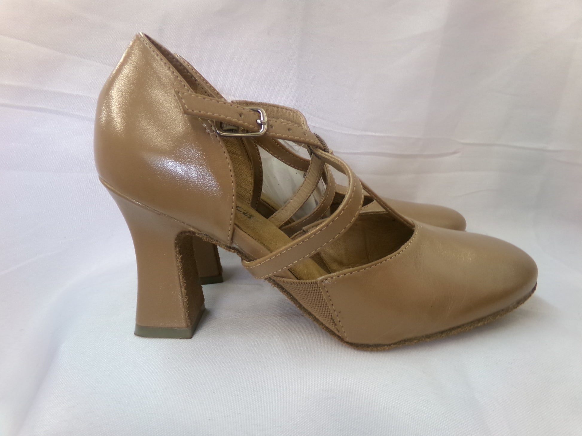 Pre-Owned Ballroom Shoes So Danca SD153 Leather 3" Heel Cross and T-Strap