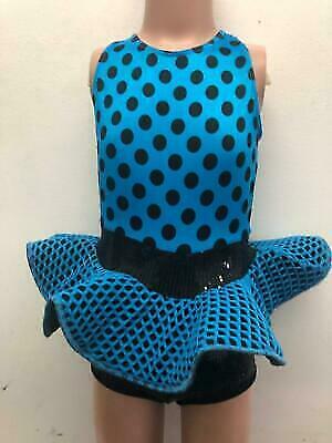 Blue/Black Polka Dot with sequin briefs - Black and blue Mesh skirt and Sequin waist band.