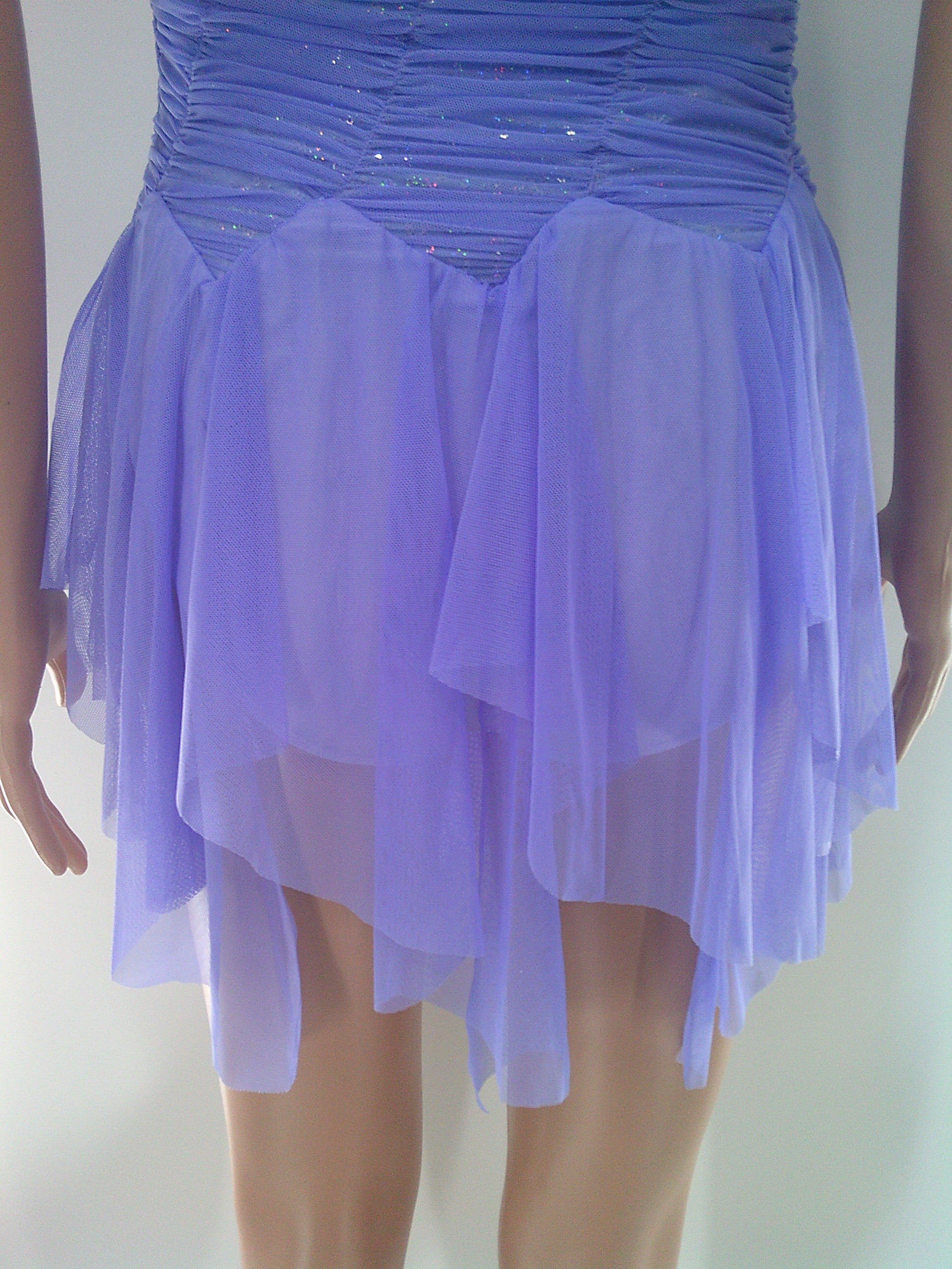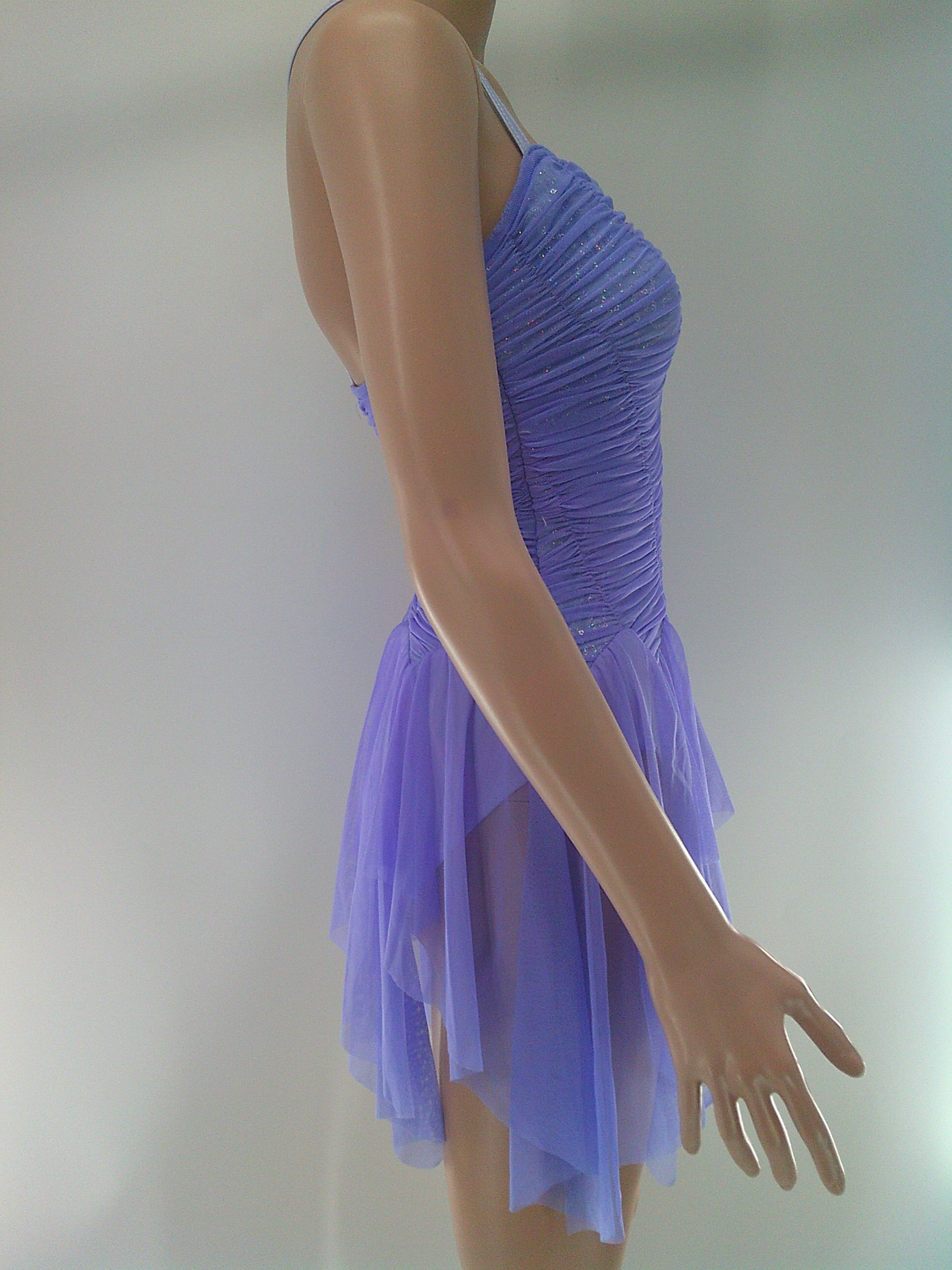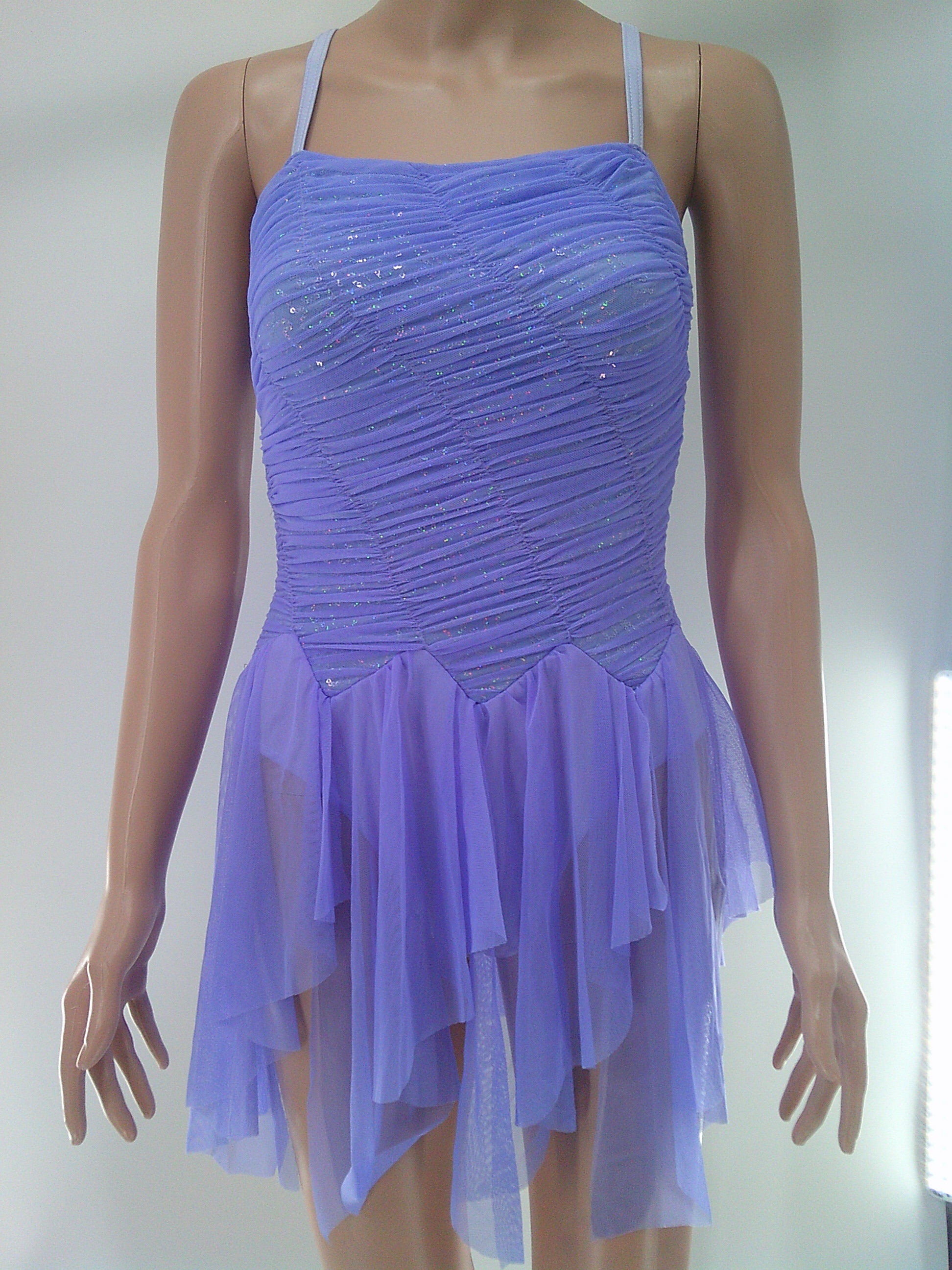 Brand: Art Stone 26425 F25-479 Size: Small Adult Colors: Lavender Great For: Lyrical Ballet Contemporary Jazz Features: Solid Cami Skirt Trunks Mesh DRESS: Sequined polyester with mesh overlay and attached mesh skirt with attached leotard.
