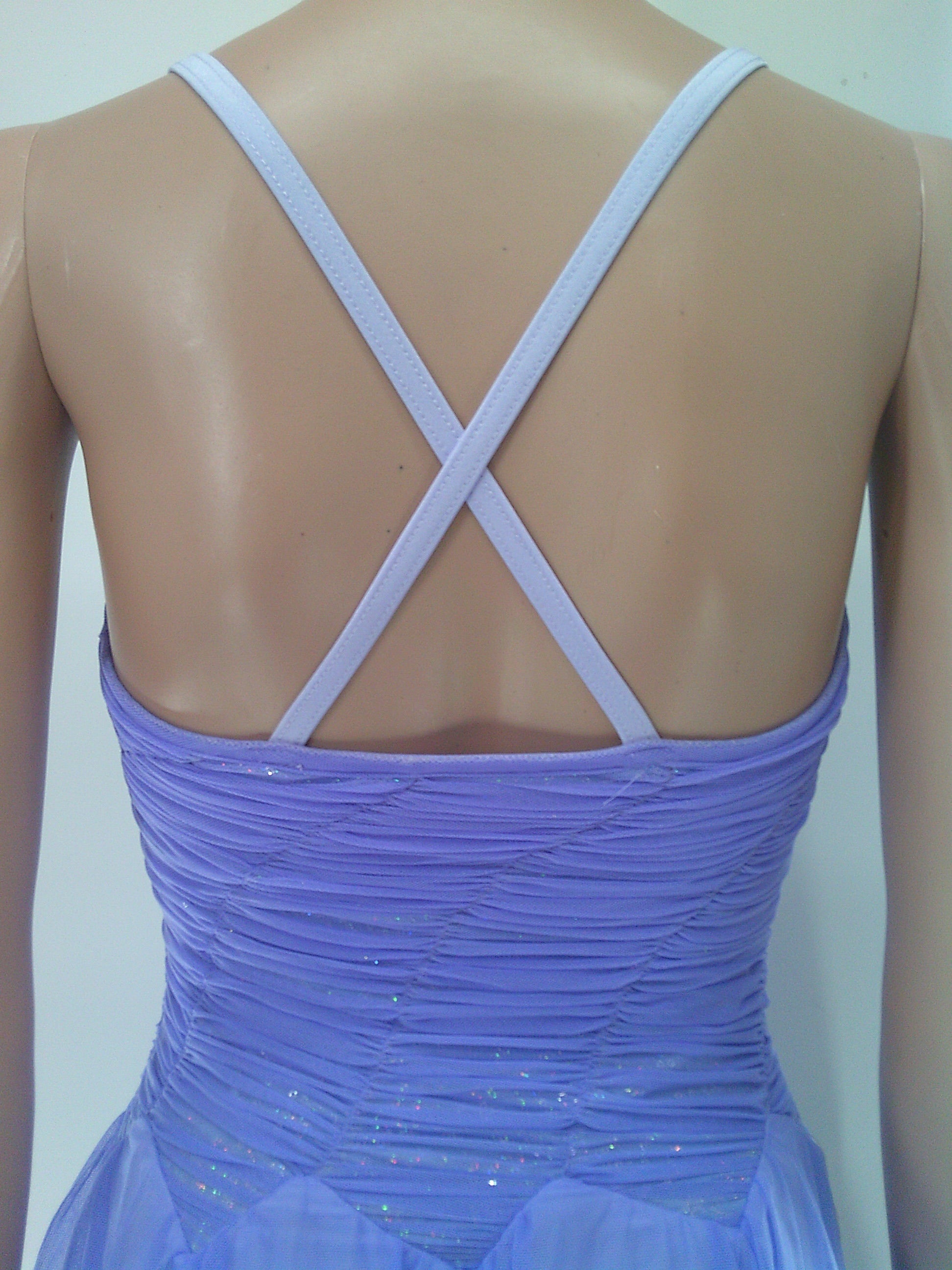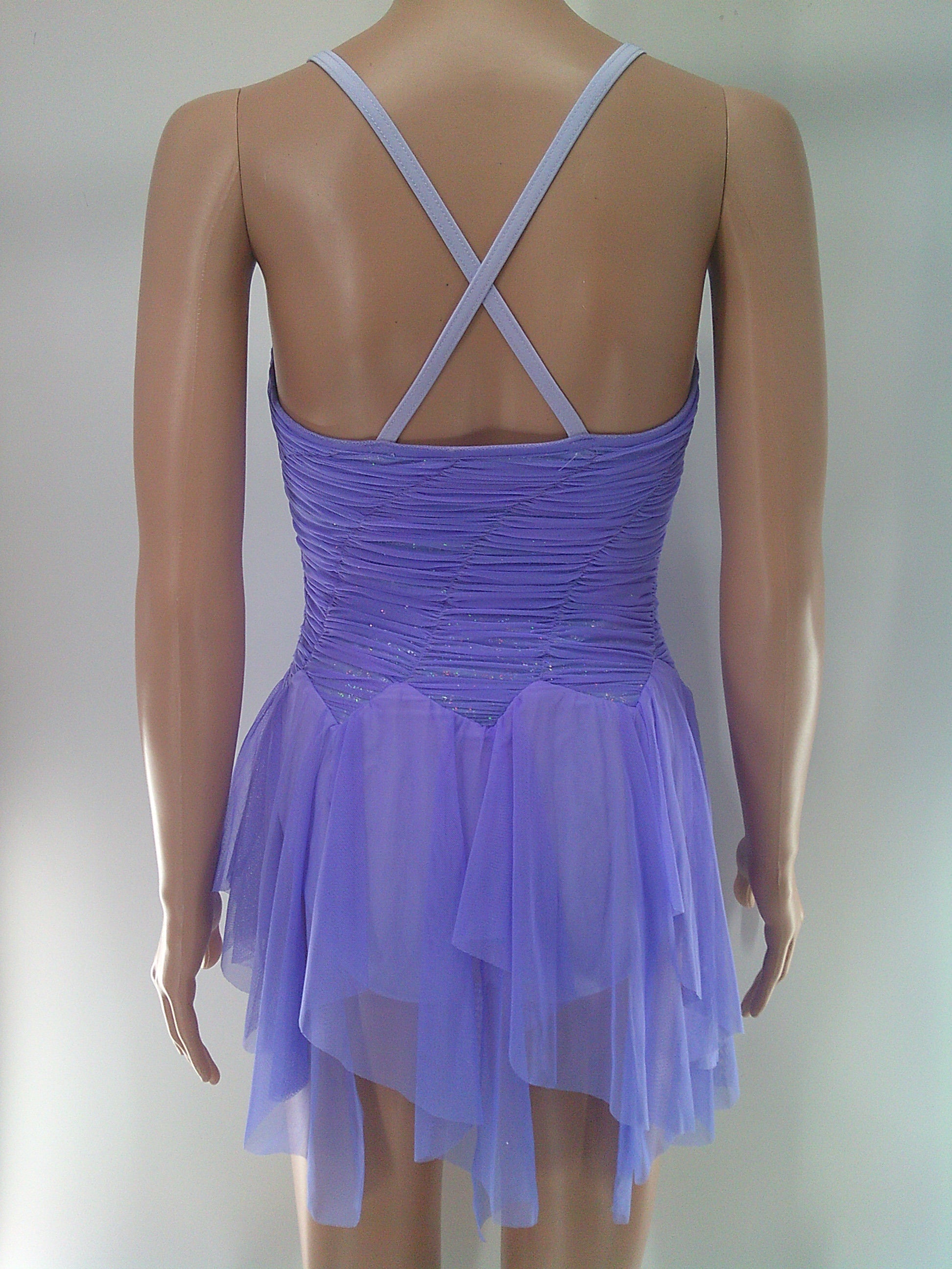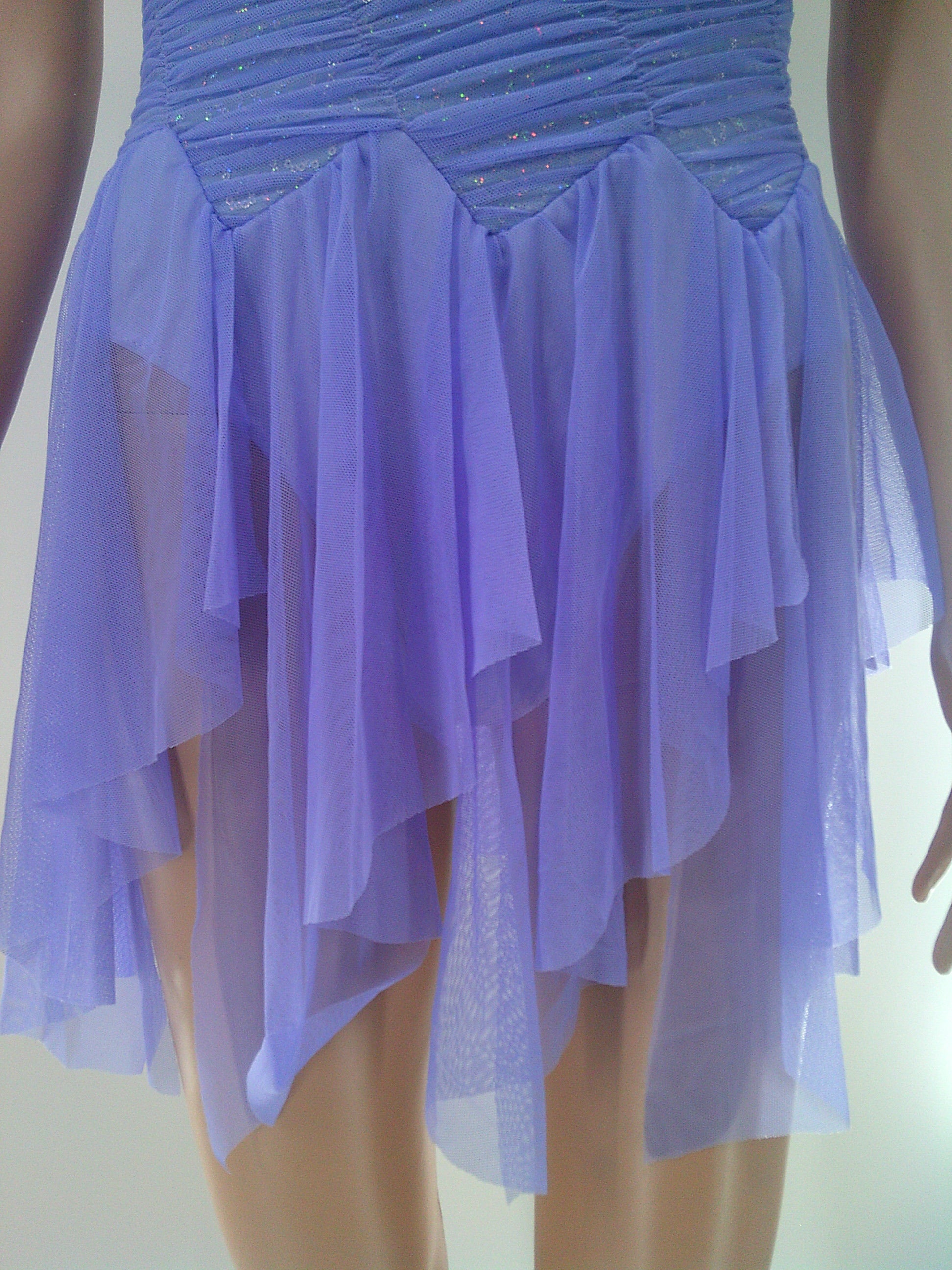 Brand: Art Stone 26425 F25-479 Size: Small Adult Colors: Lavender Great For: Lyrical Ballet Contemporary Jazz Features: Solid Cami Skirt Trunks Mesh DRESS: Sequined polyester with mesh overlay and attached mesh skirt with attached leotard.