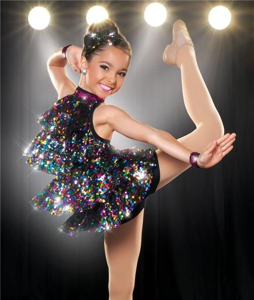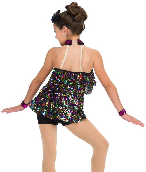 Multicolor sequin mesh ruffle tunic over attached spandex shortall. Create a memorable performance with this kids Costume.