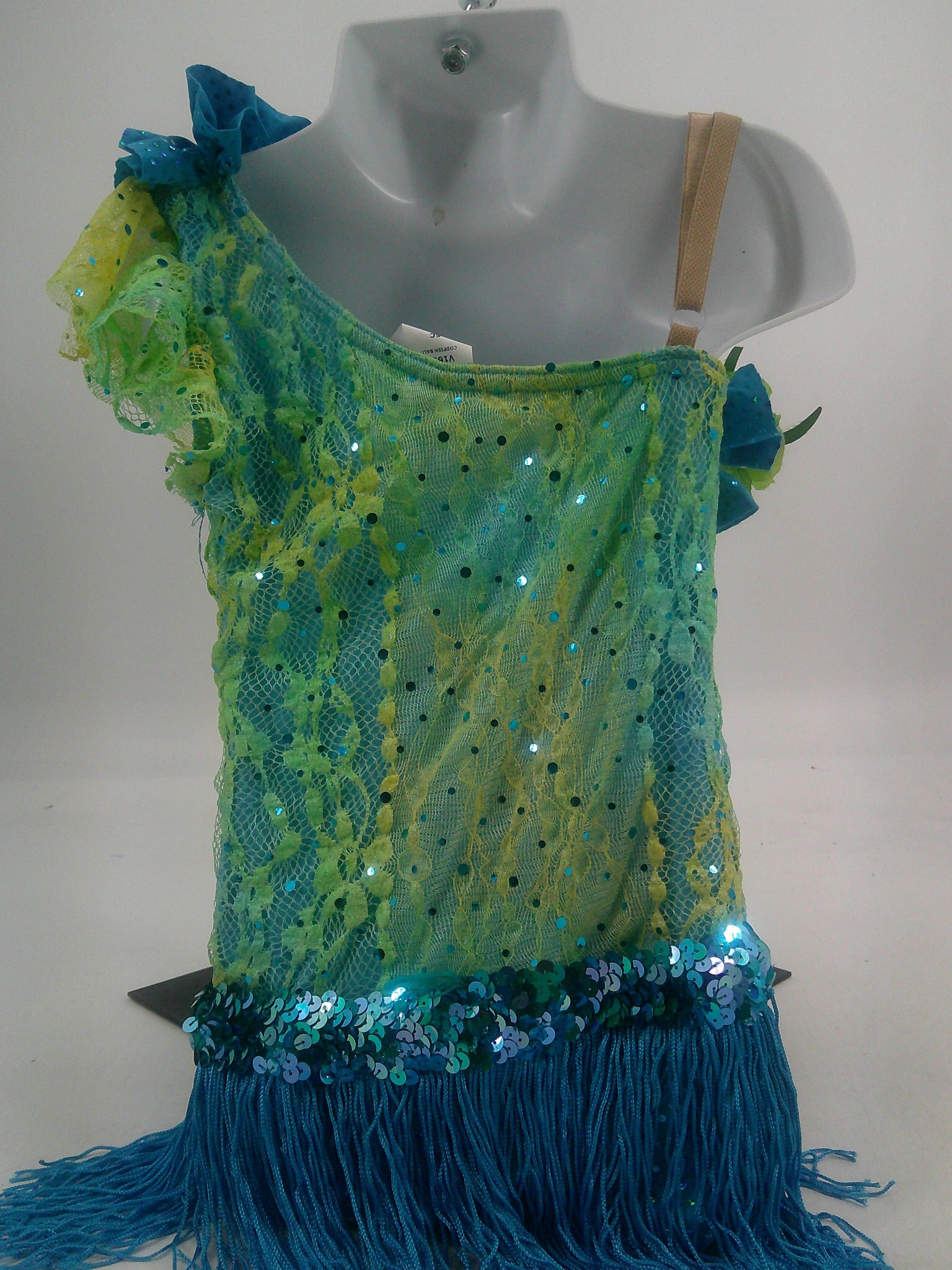 Pre-Owned Costume AWCT V1650 Small Child Lime Blue Fringe Skirt Jazz Sequins
