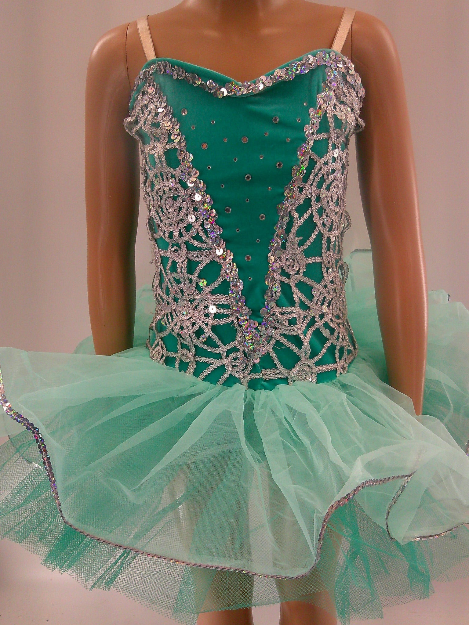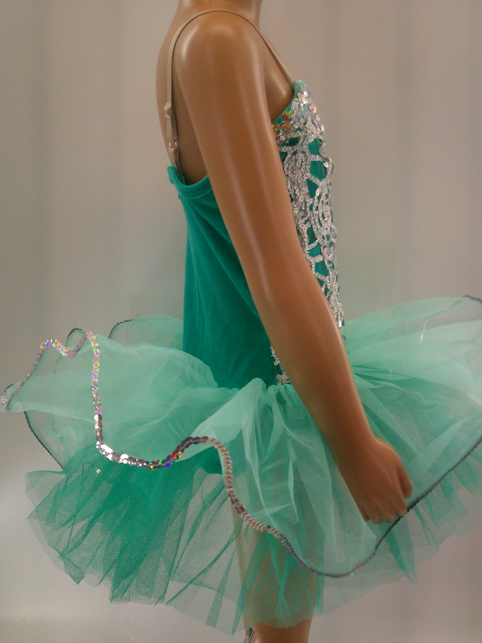 Pre-Owned Costume Ballet Medium Child Teal Curtain Call Tutu Sequin Lace YAGP Winter Queen