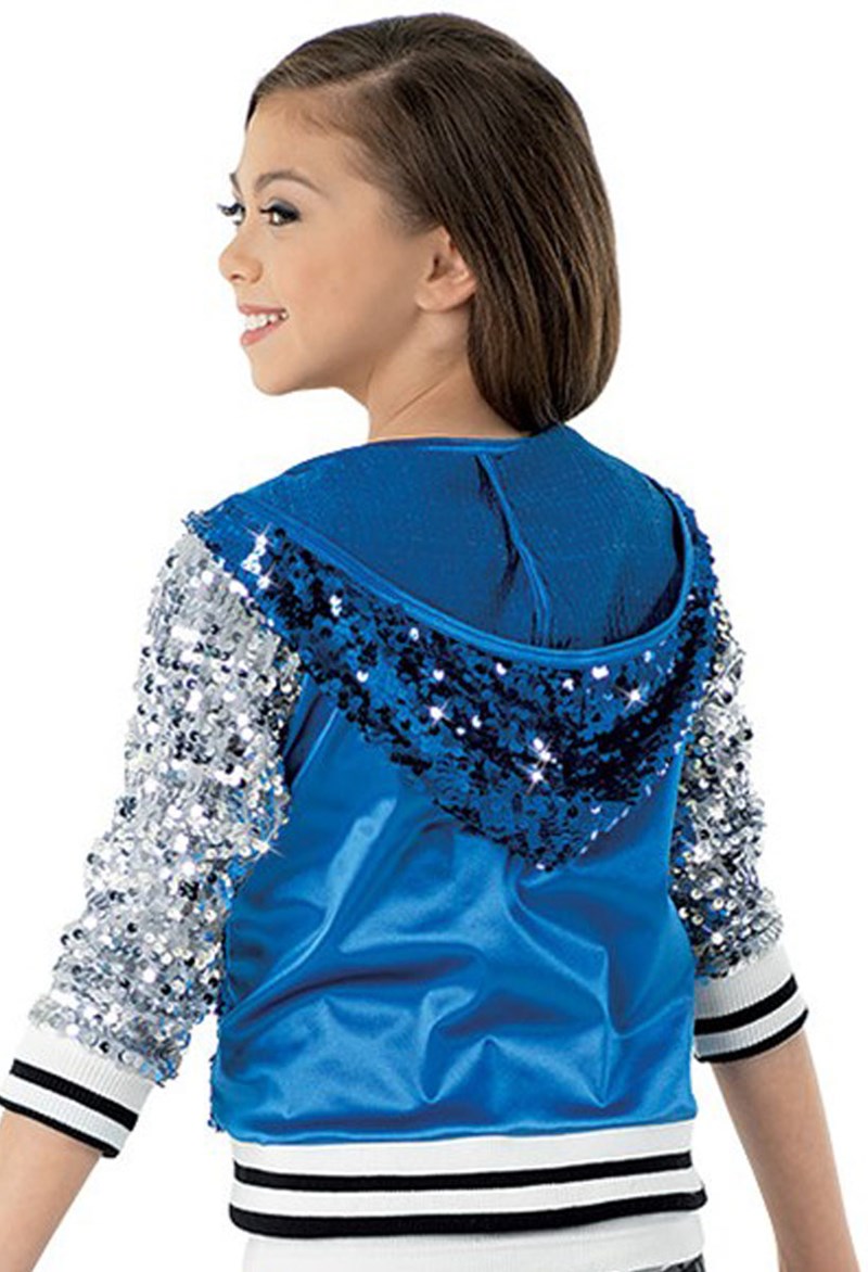 Hoodie jacket is made of Ultra Sparkle sequin with contrasting sequin sleeves