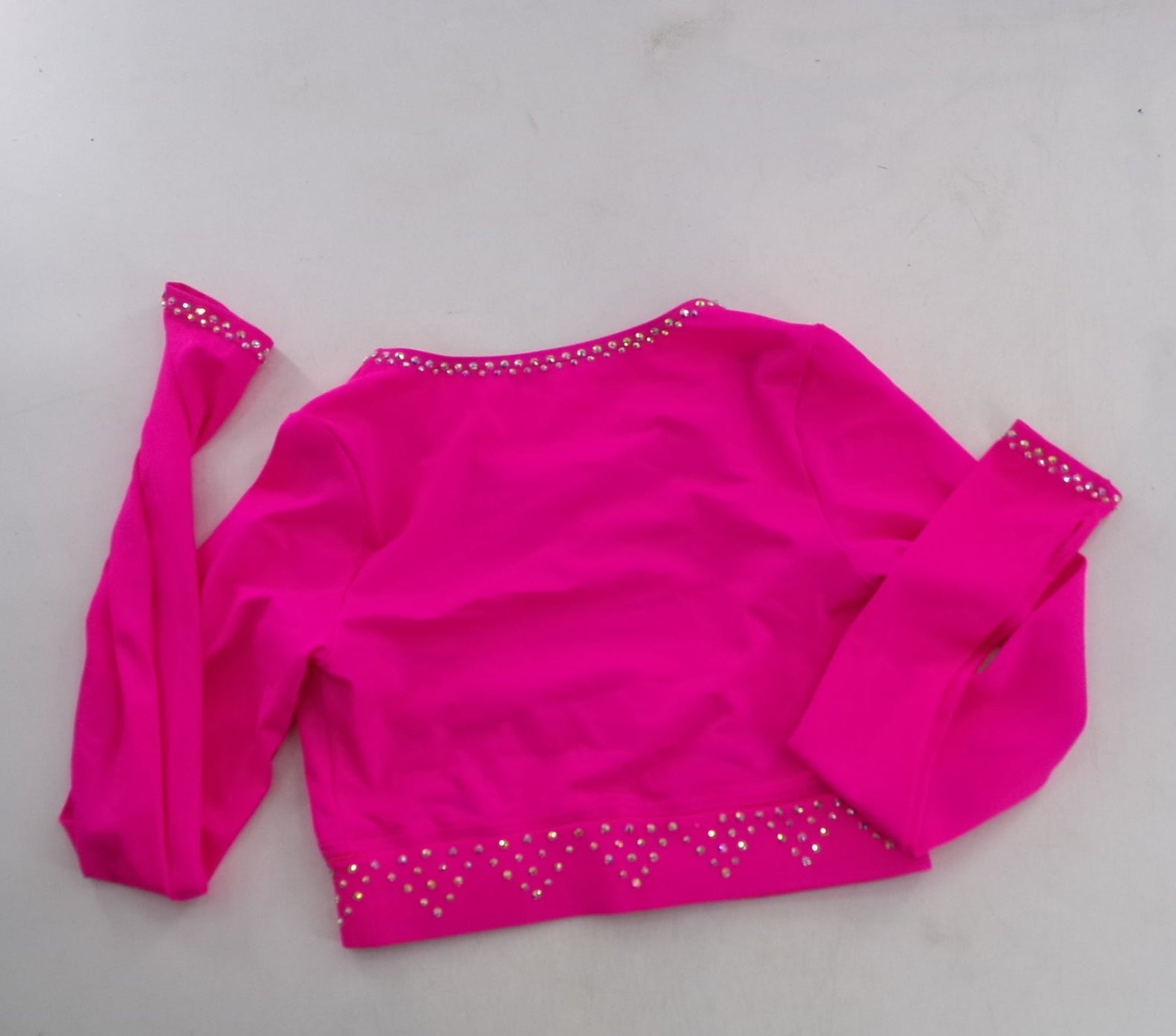 Pre-Owned Costume Crop Top Medium Adult Hot pink Long Sleeve lots of Stones