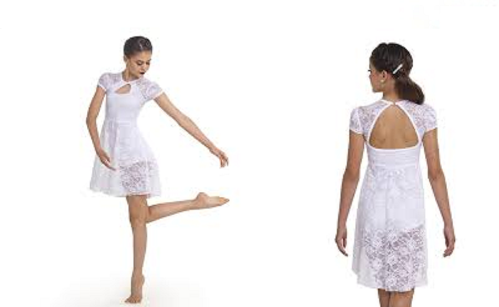 White Leotard with Cap Lace Sleeves, Lace overlay with high Low skirt attached