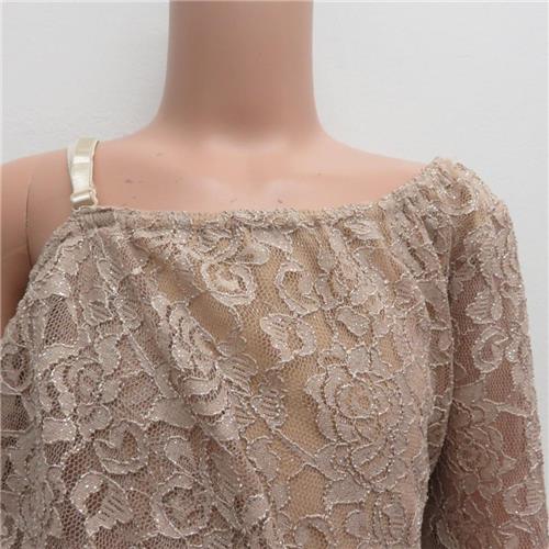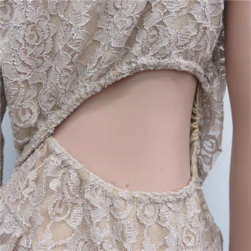 Detailed Description: Asymmtrical Dress 1 sleeve 1 nude adjustable strap - Nude Unitard with Lace Overlay