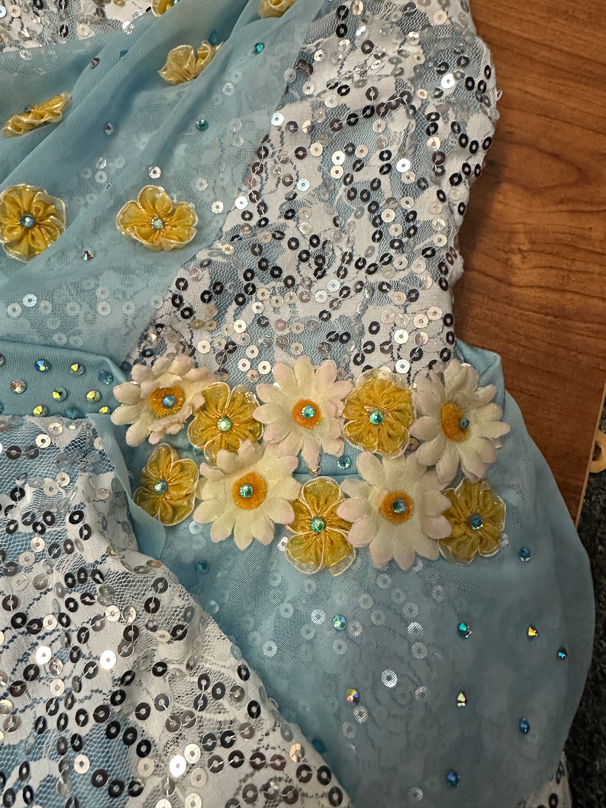 Pre-Owned Costume Large Child Blue Revolution RC19697 Lyrical Ballet Contemporary Sequin Dress Flowers