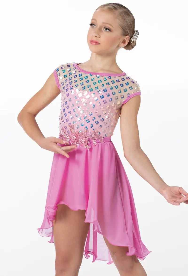 Pre-Owned Costume Large Child Pink Weissman 14709 Lyrical Ballet Contemporary Sequin Flowy Dress