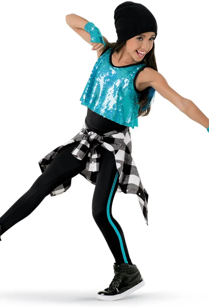 Pre-Owned Costume Large Child Turquoise Weissman 9906 Hip Hop Jazz Tap Sequin