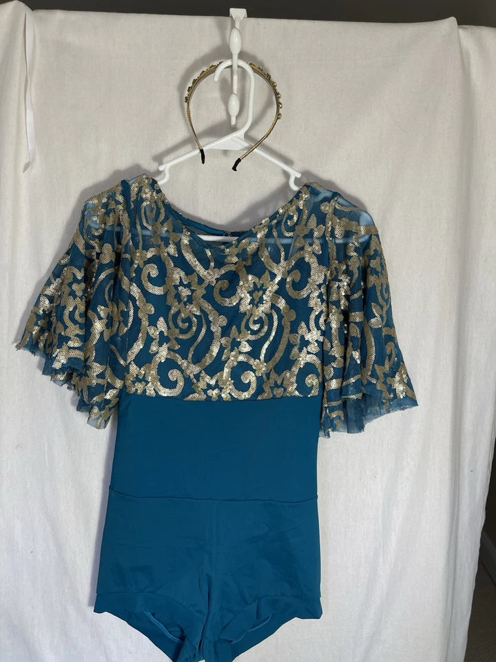 Pre-Owned Costume Medium Adult Teal Weissman 7662 Lyrical Contemporary Jazz Sequin Romper Mesh