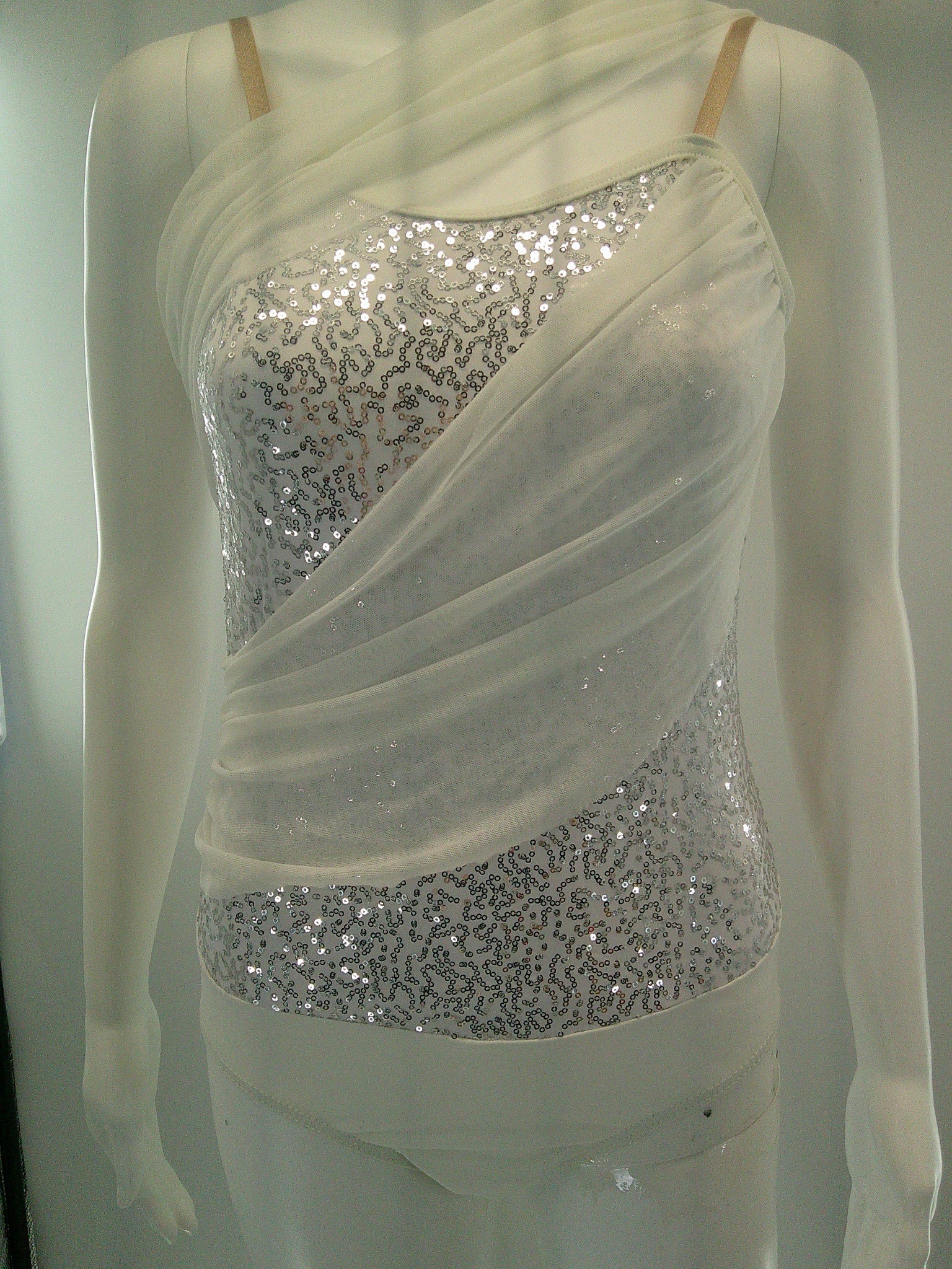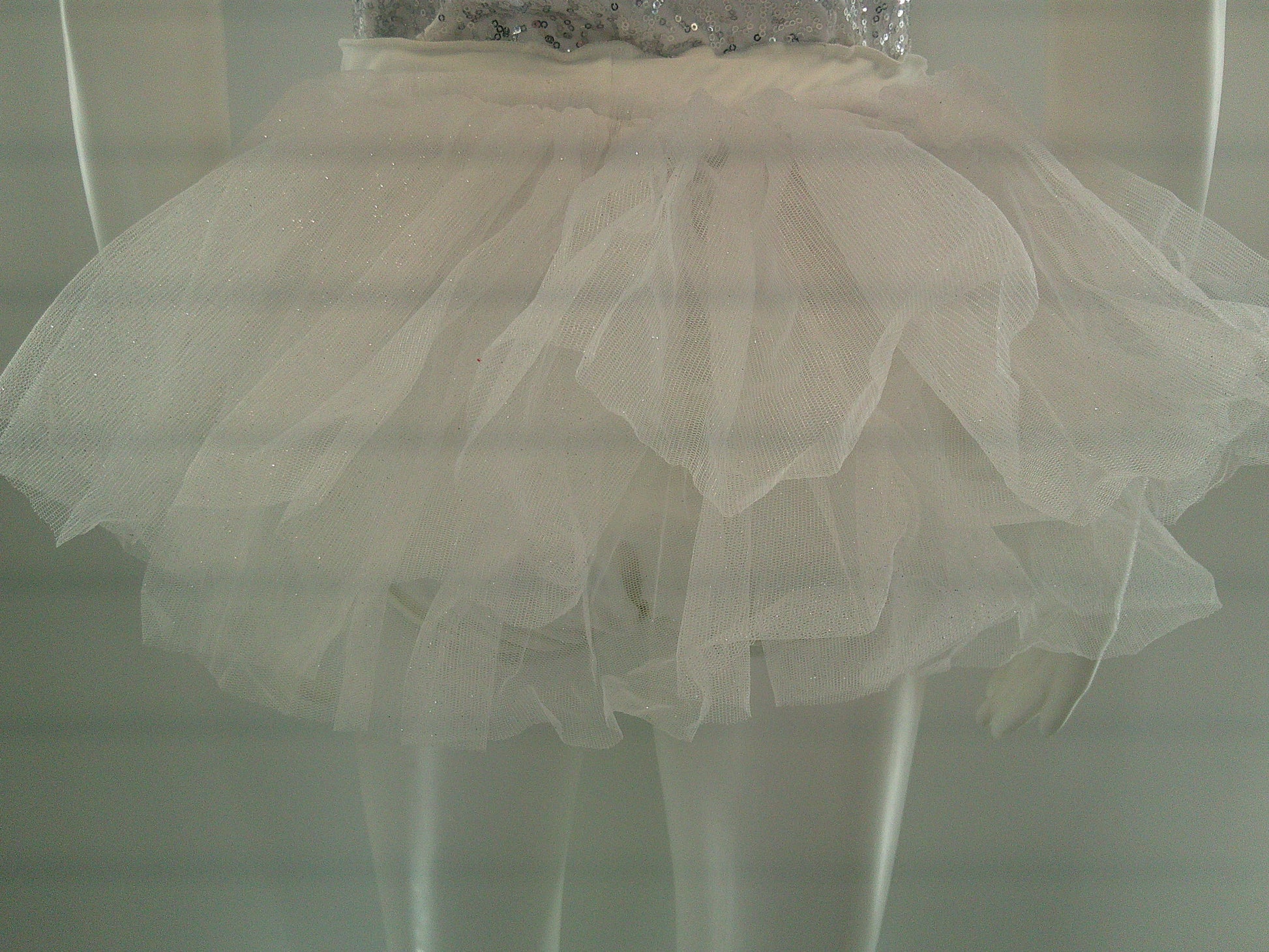 Detailed Description: 2 pc costume includes sequined leotard with adjustable straps and attached mesh. Separate tulle tutu with elastic waistband included.