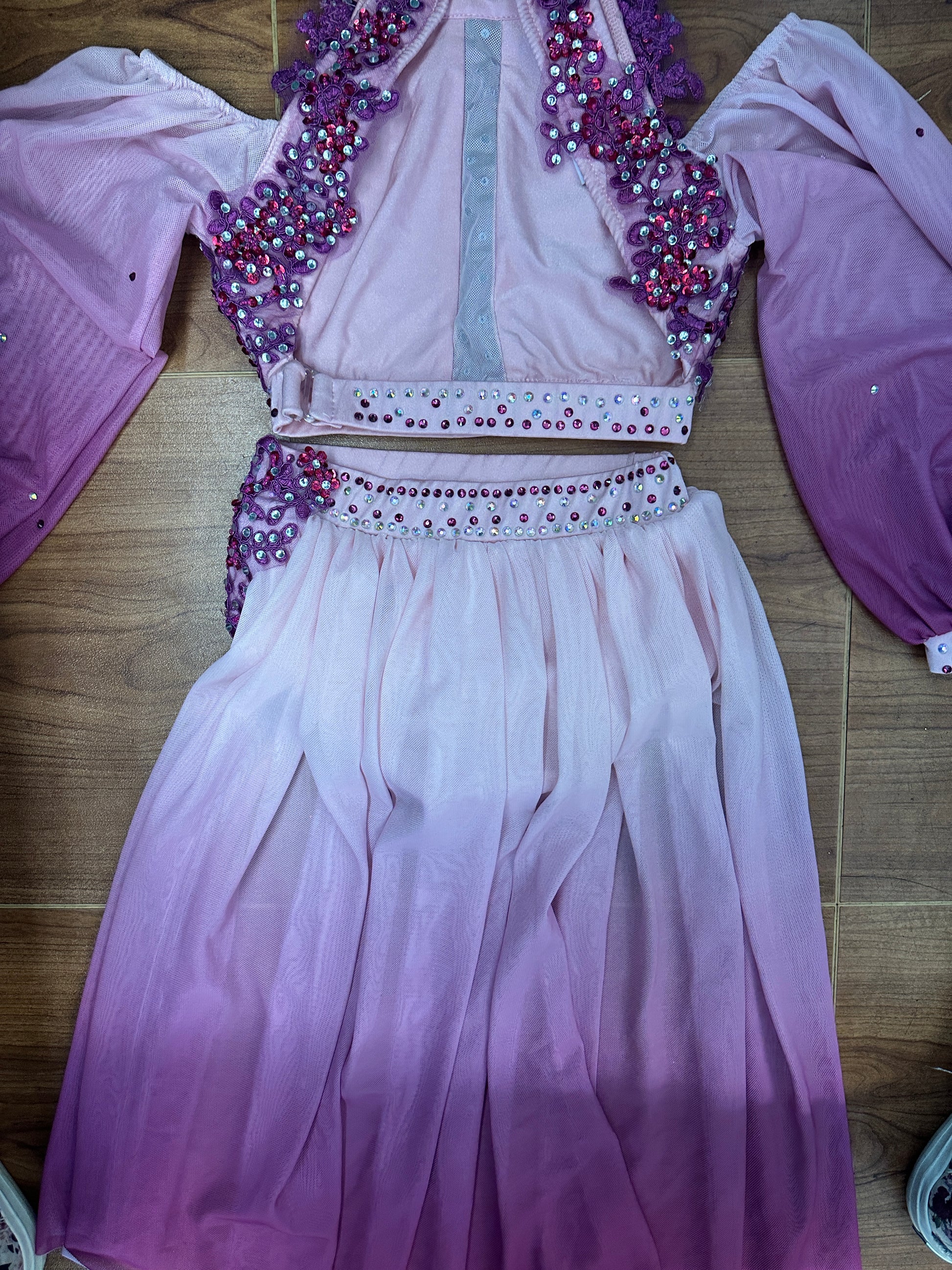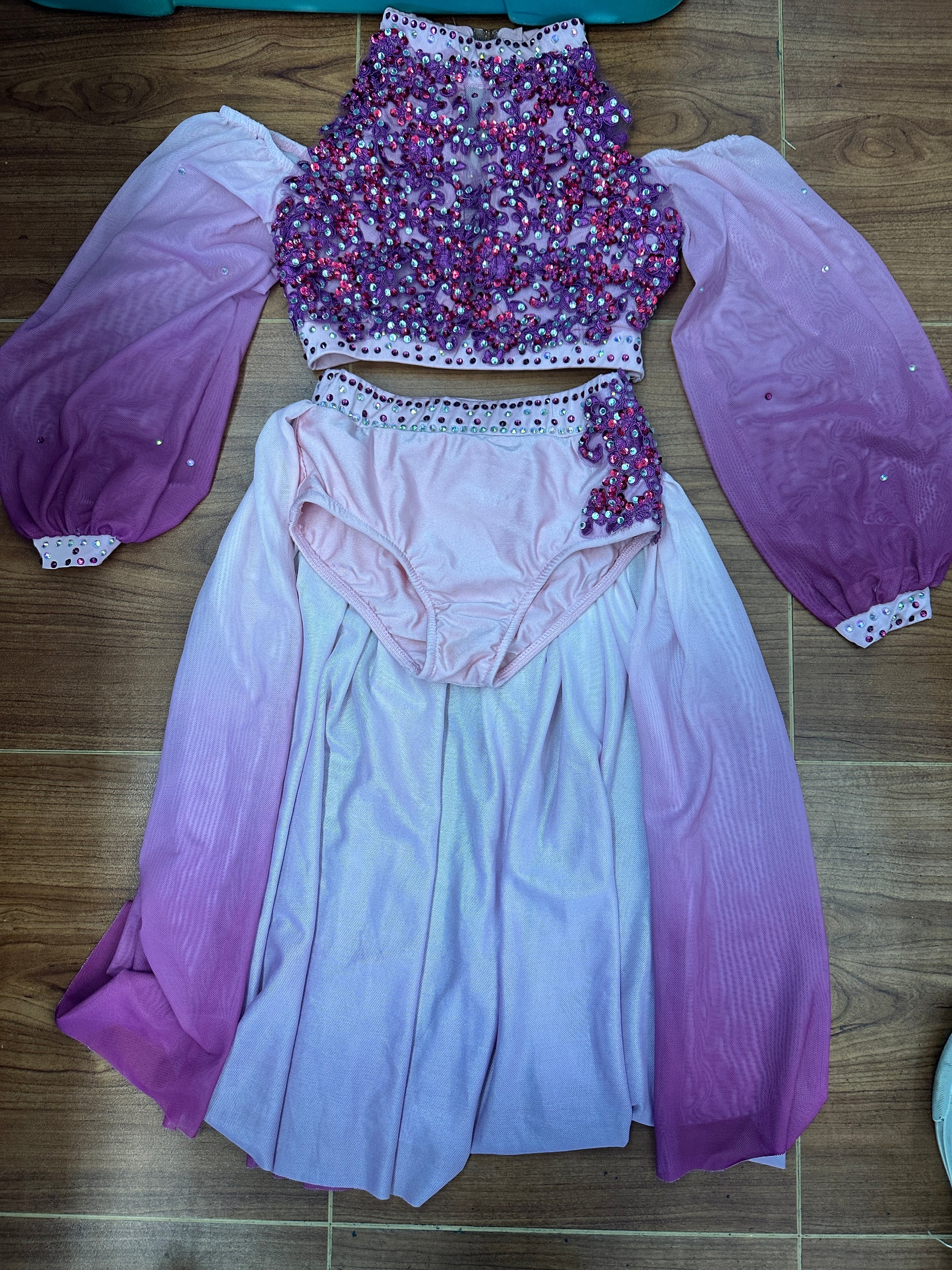Pre-Owned Costume Medium Child Pink Glamour Lyrical Contemporary Ballet 2 pc Rhinestone Long sleeve