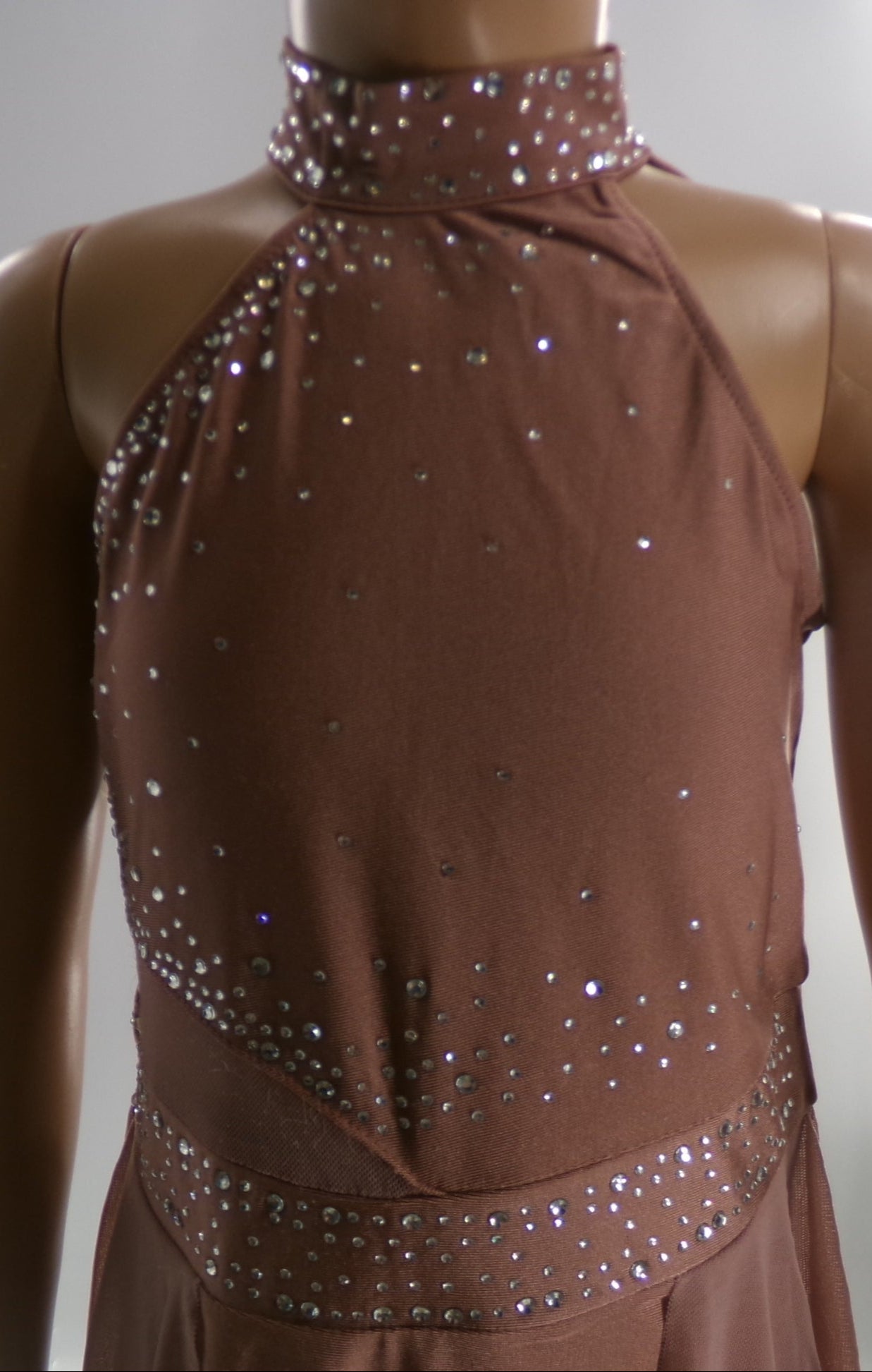 Detailed Description: Halter neck leotard with rhinestones and flowy skirt.