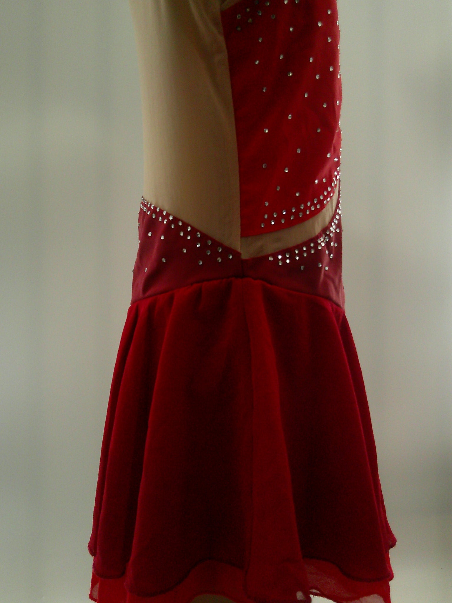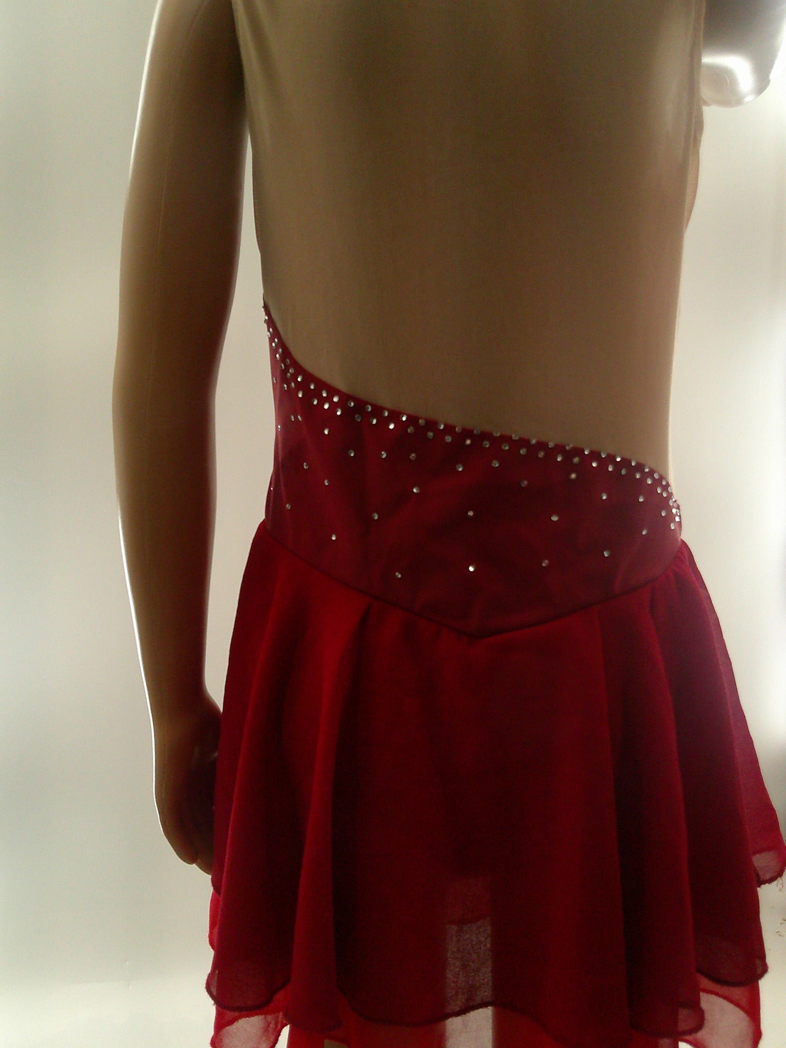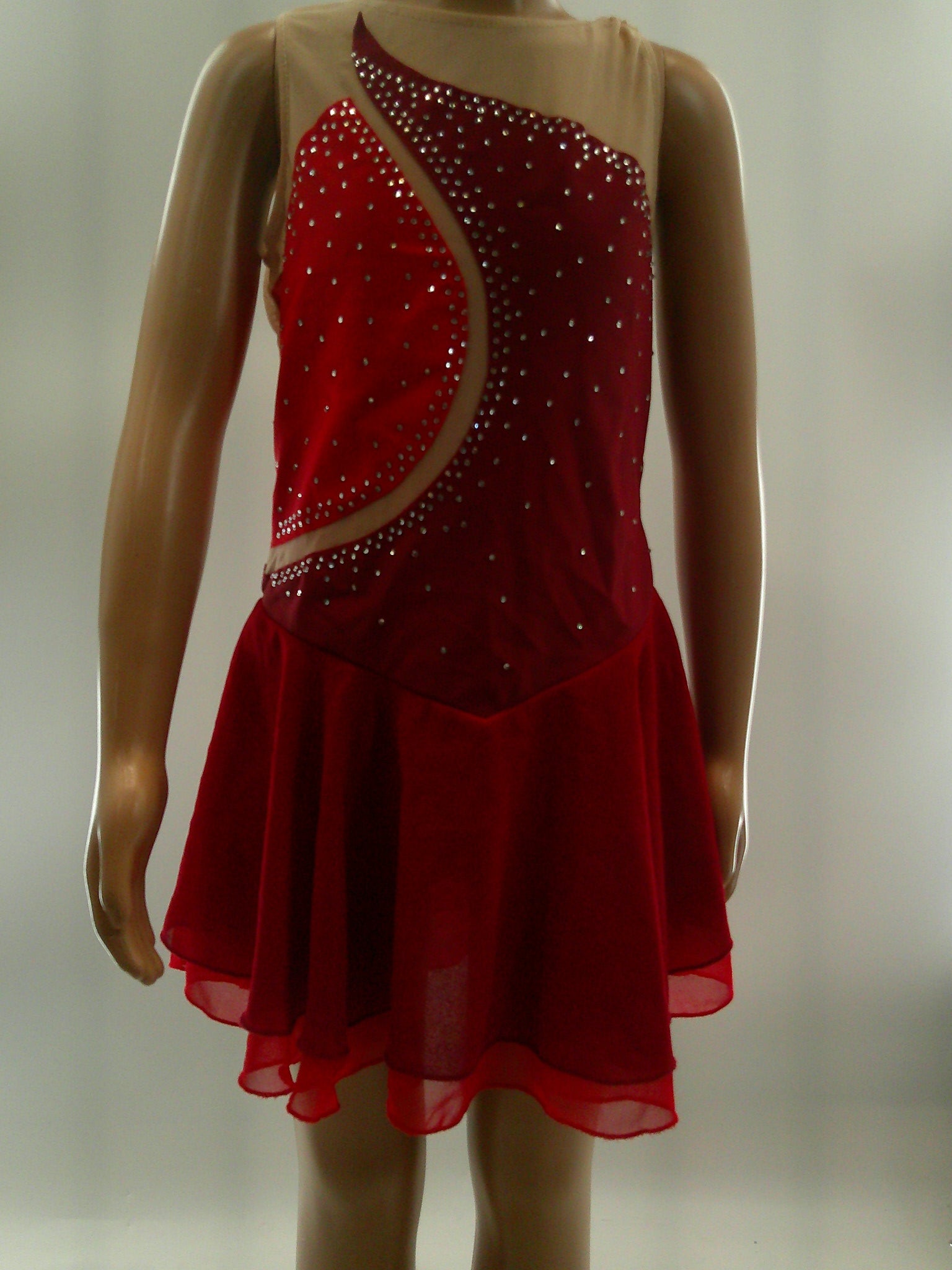 Pre-Owned Costume Medium Child Red ieffiel Lyrical Ballet Ice Skating Rhinestone Dress Mesh