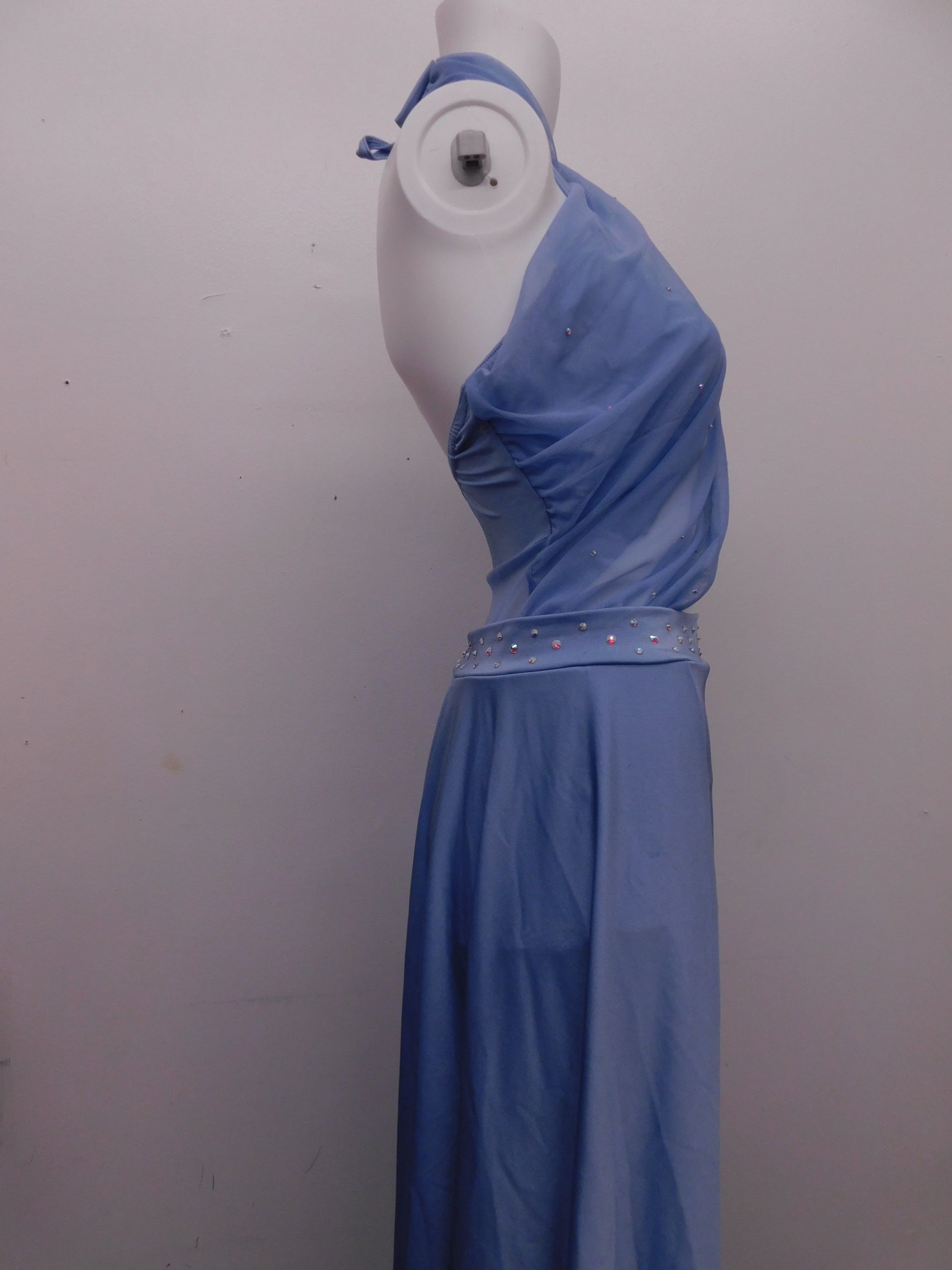 Pre-Owned Costume Small Adult Blue Kelle Lyrical Contemporary Ballet Dress Rhinestones Mesh