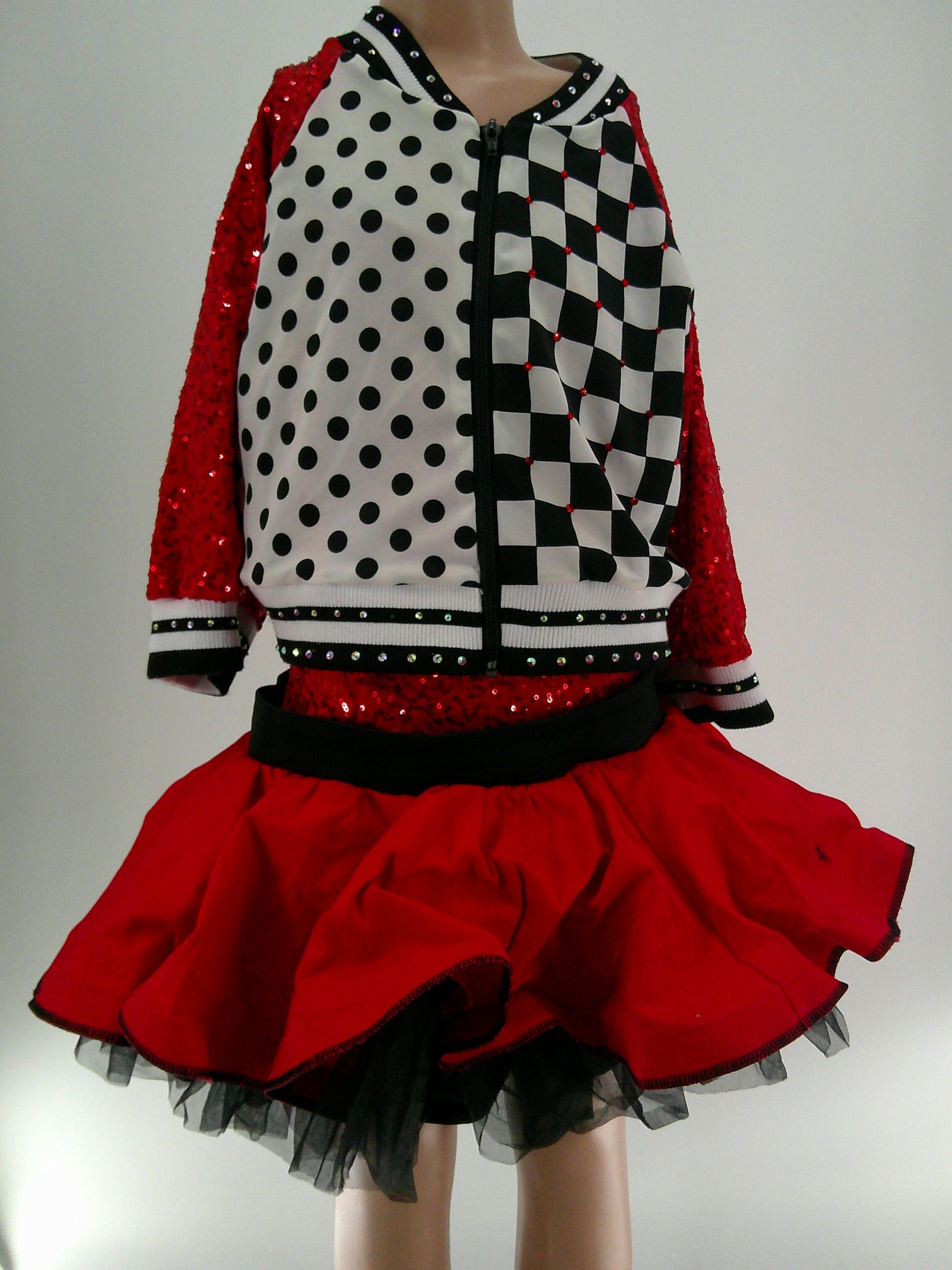 Features: Checkers Dots 1/2 Sleeve Jacket Trunks Lycra
