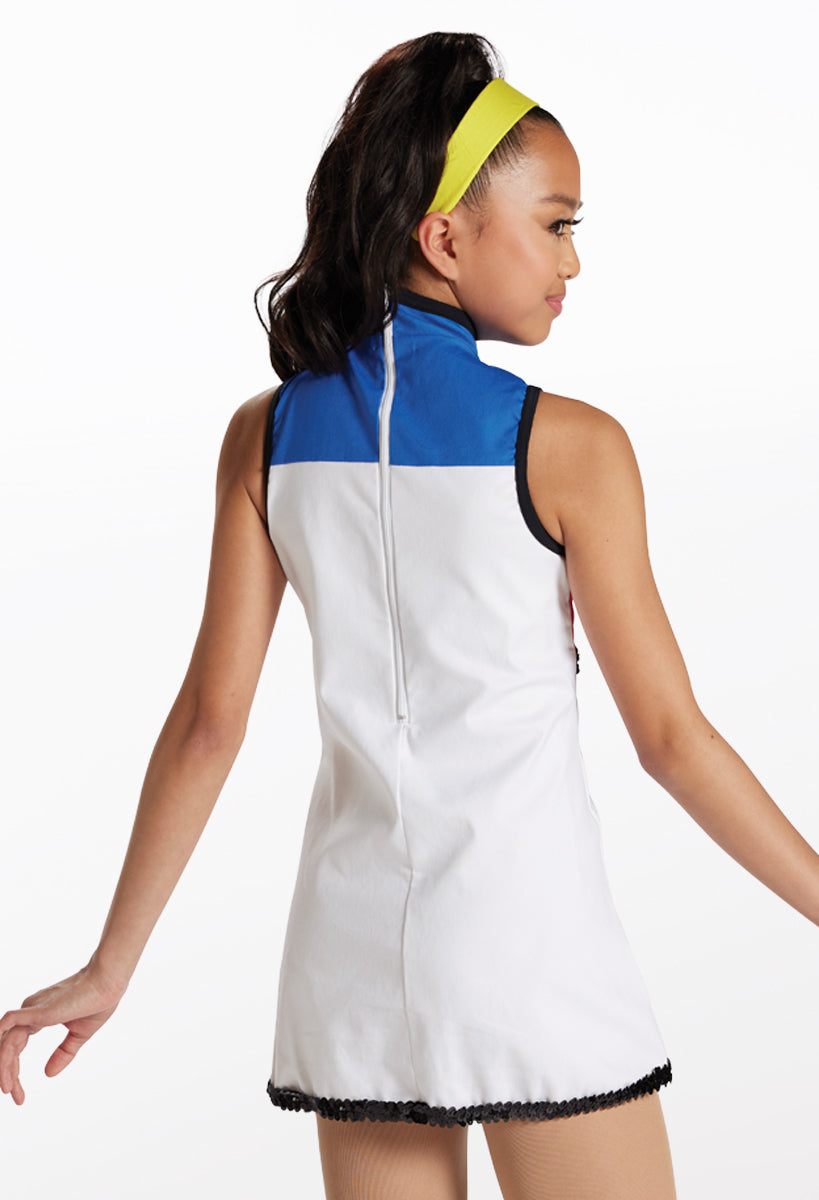 Brand: Weissman 10296 Size: Big Kid Intermediate Child 6X-7 Colors: White Yellow Blue Red Black Great For: Jazz Tap Musical Theater Clogging 60s Mod Features: Tank Dress Shorts Lycra Brick House 10296
