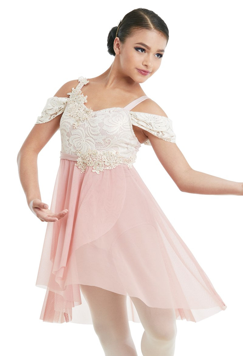 Brand: Weissman 10935 D25-482 Size: Adult Large Adult Colors: Pink Beige Gold Great For: Contemporary Modern Lyrical Ballet Features: Capped Dress Trunks Lace This dress is made of metallic foil stretch lace over a shiny spandex bodice