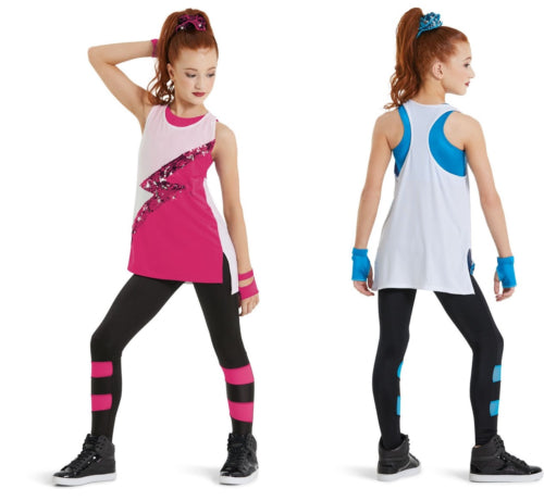 Two piece costume includes unitard and tank top