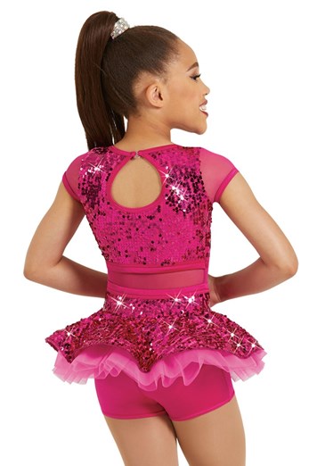 Cap sleeve biketard is made of Ultra Sparkle sequins