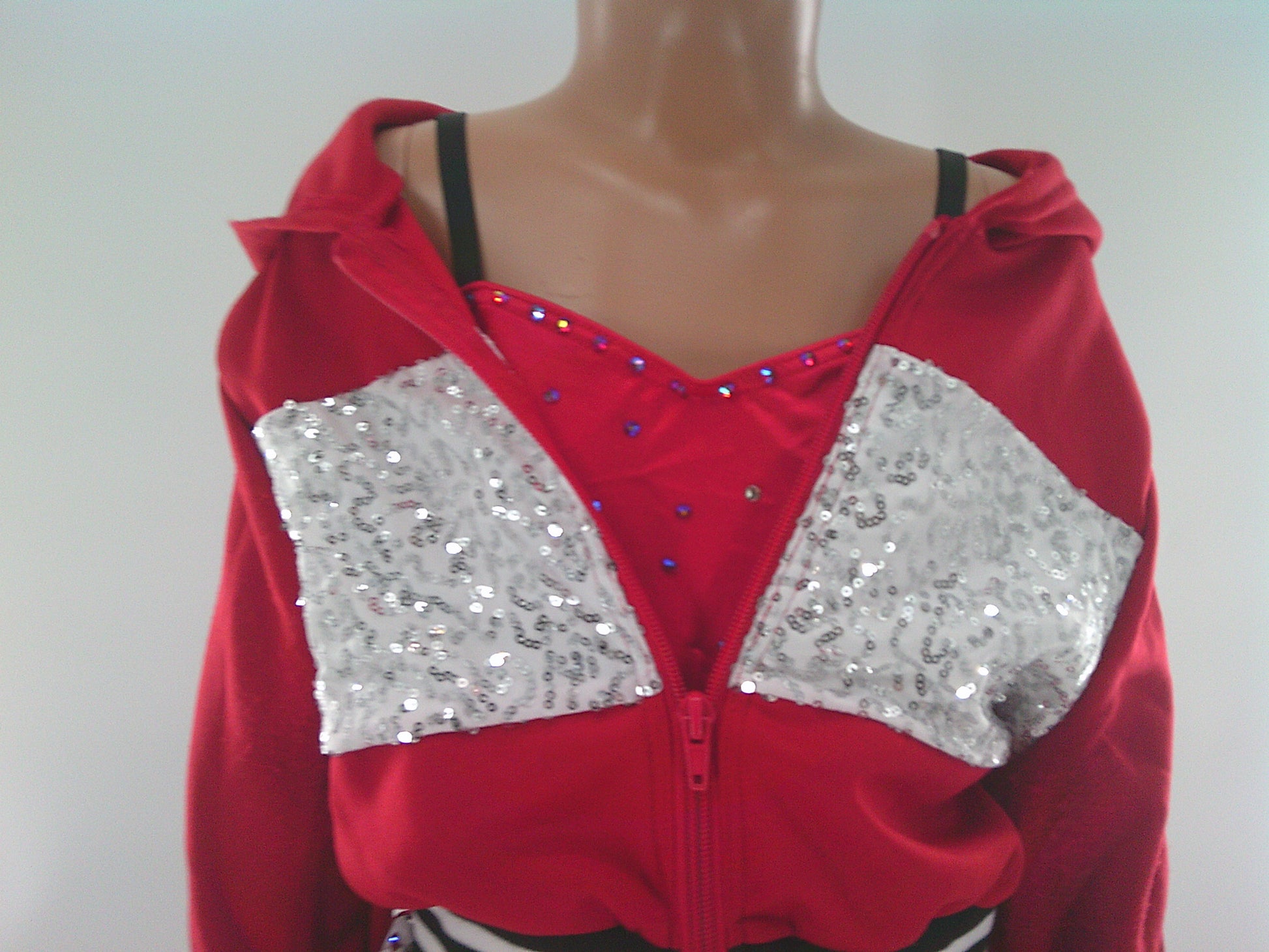 Sequin spandex inset on front bodice