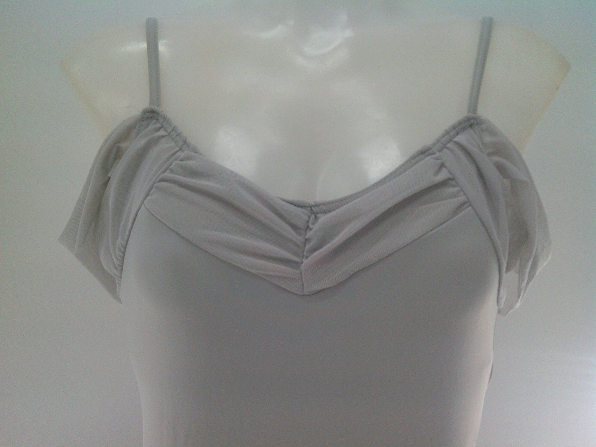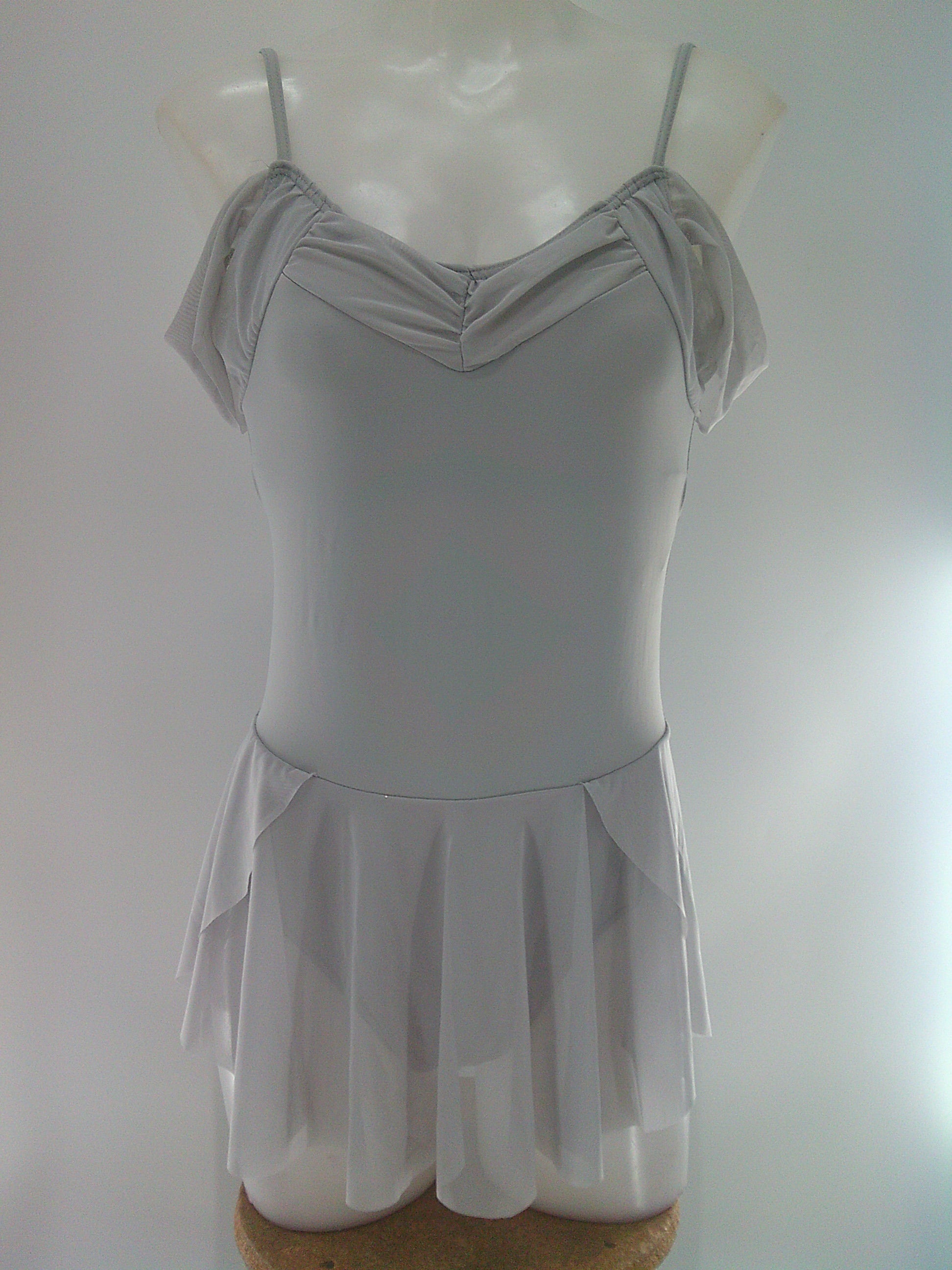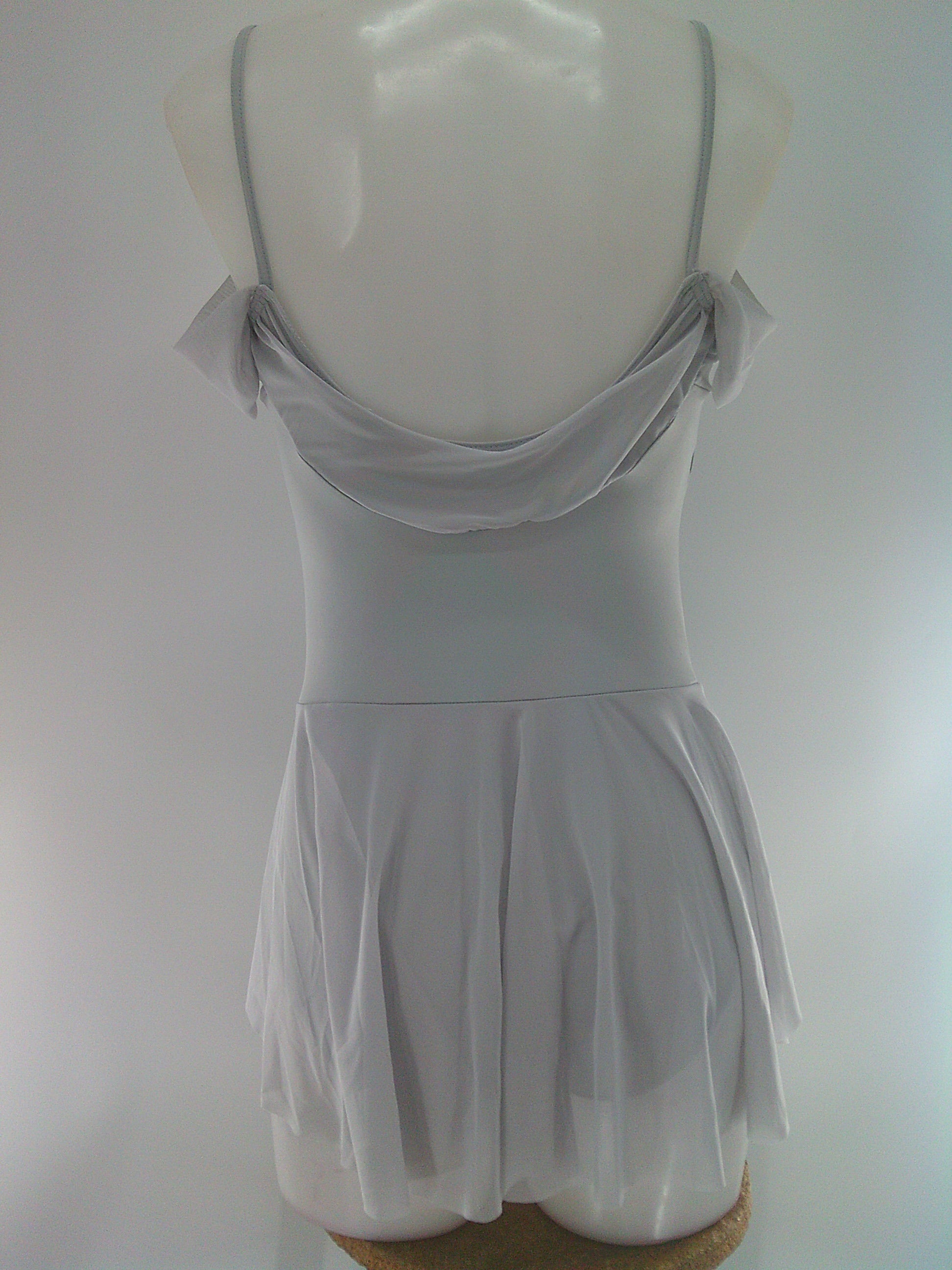 Brand: Weissman D10690 D25-499 Size: Large Adult Colors: Gray Great For: Lyrical Ballet Contemporary Features: Solid Off the shoulder Spandex Off The Shoulder Mesh Dress
