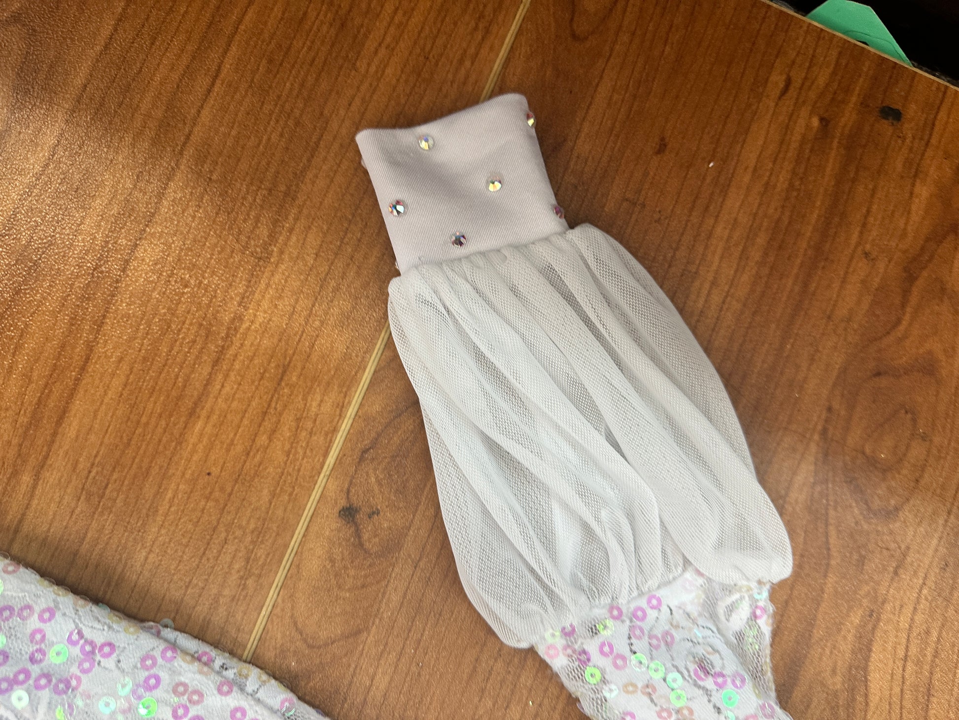 Features: Lined, No Straps, Sequin, Lace, Attached Trunks, Rhinestones added for extra sparkle