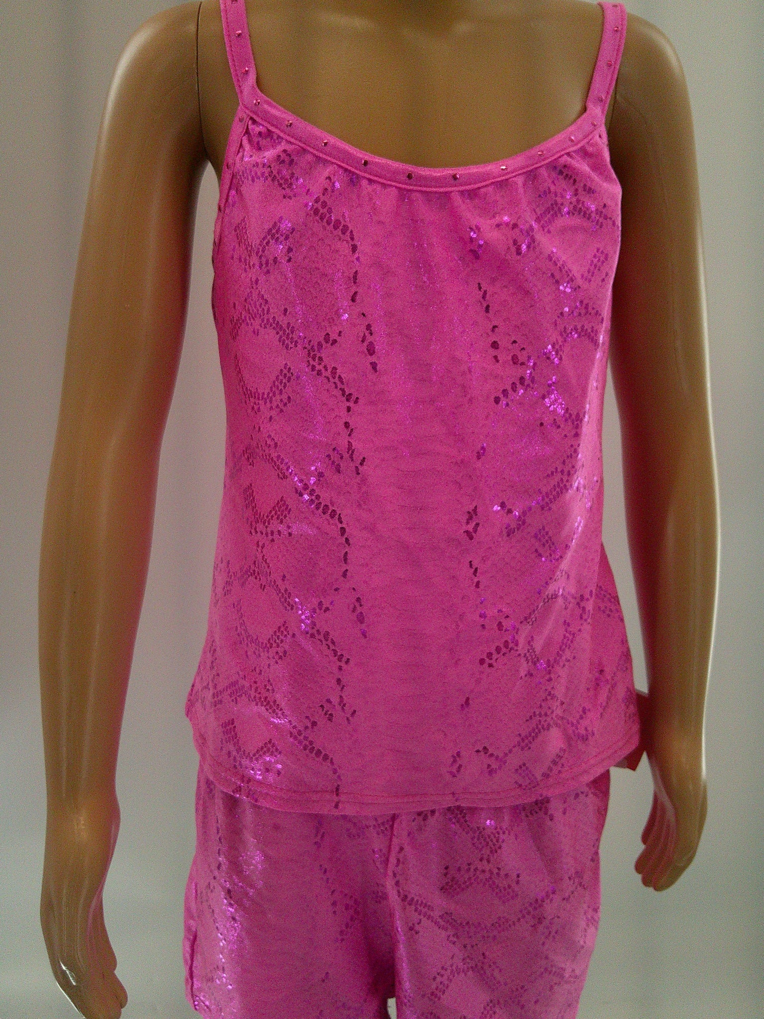 Pre-Owned SET Crop Top & Shorts Capezio Pink Snake Print Small Adult