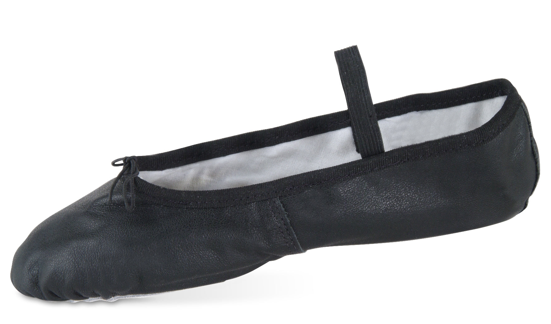 Student leather ballet slipper constructed from soft leather and a full sole. The pre-sewn elastic strap and the stretch elastic binding, makes for no drawstrings needed, a perfect feature for the beginner. The rose print inside liner adds just the right touch to these great ballet flats!