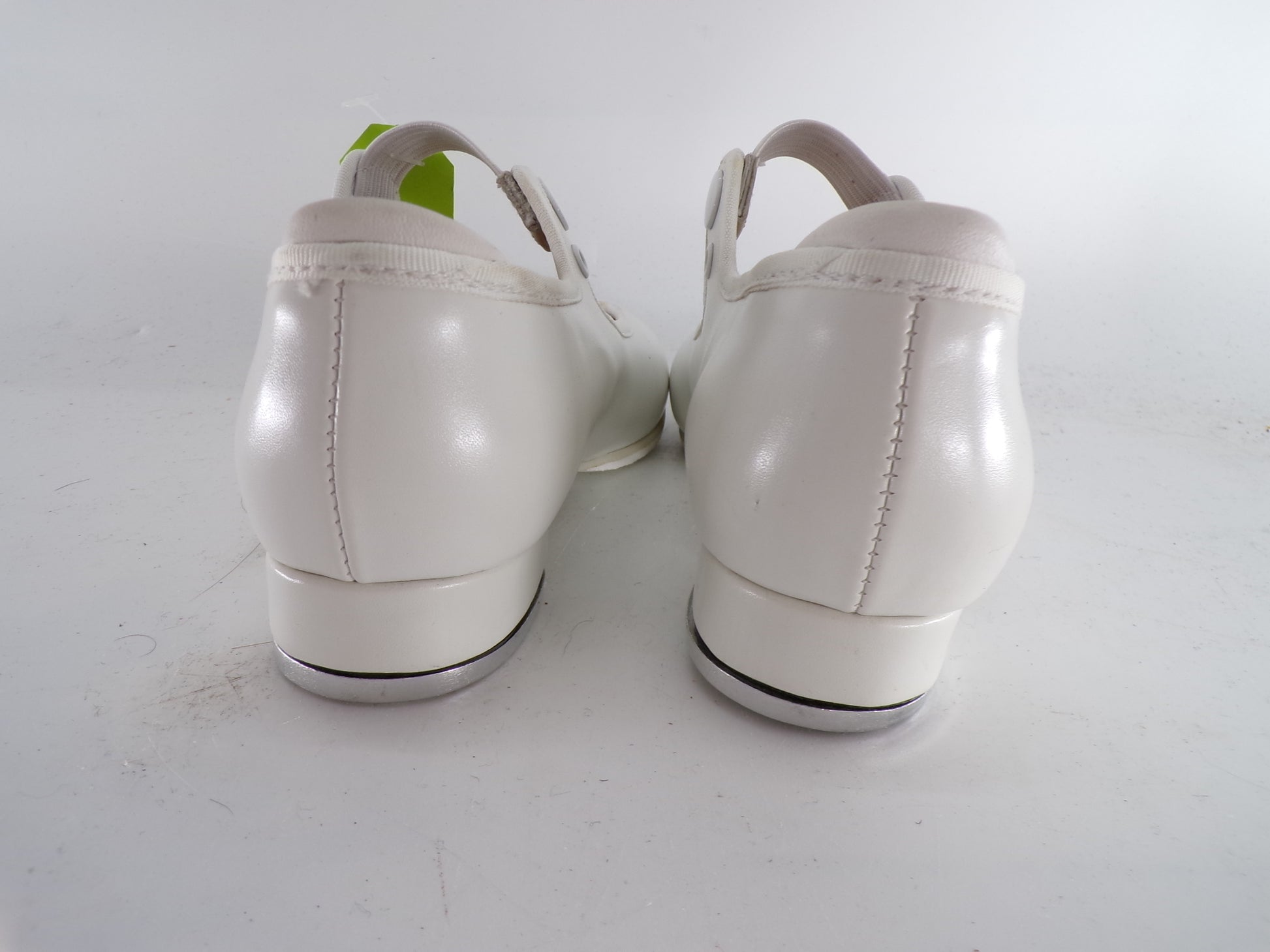 Used Excellent but missing ribbons has elastic to keep the shoe on