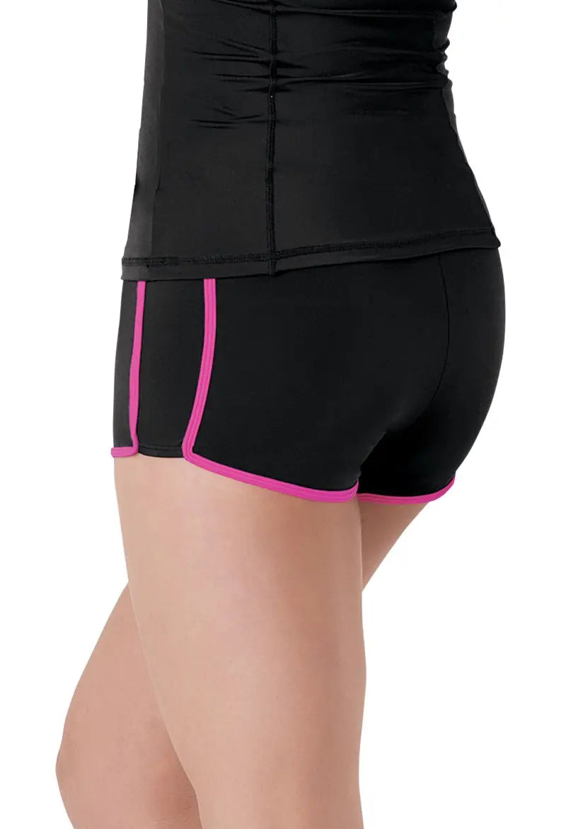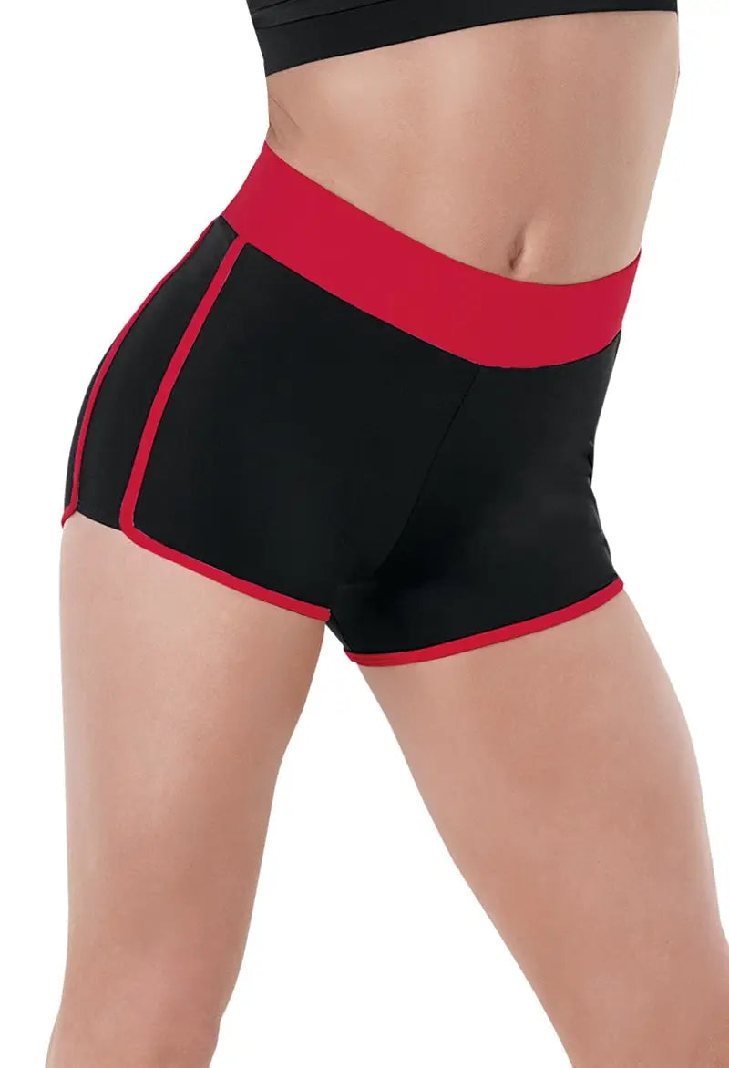 The dance short gets a sporty update with a contrasting waistband and trim. (MC inseam is 2"; SA inseam is 2 1/2".) Imported.