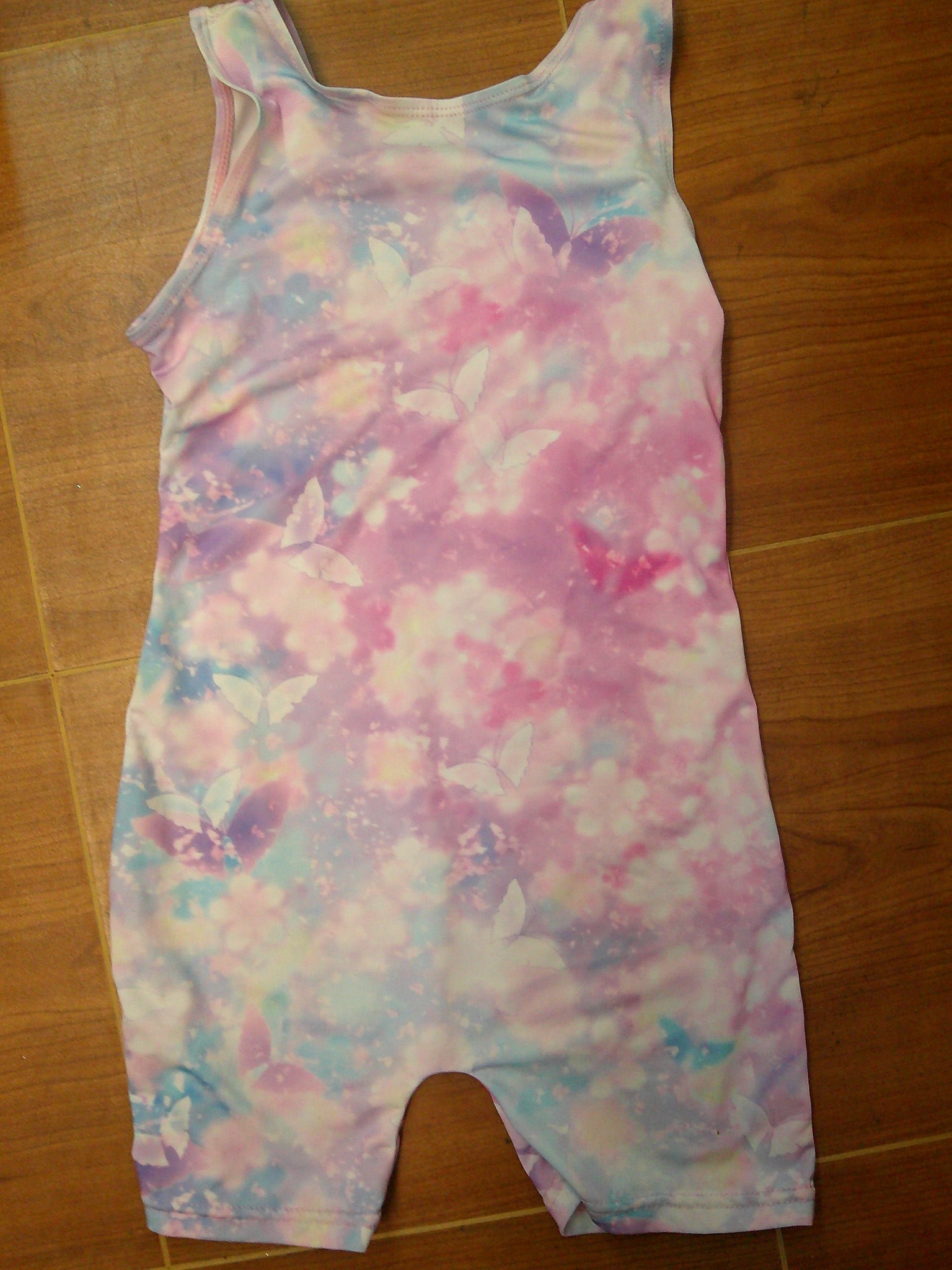 Pre-Owned Gymnastics Leotard Medium Child Buttefly Print Biketard Acro Jazz