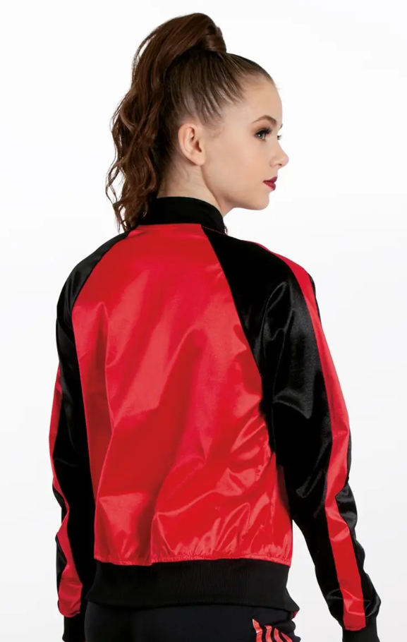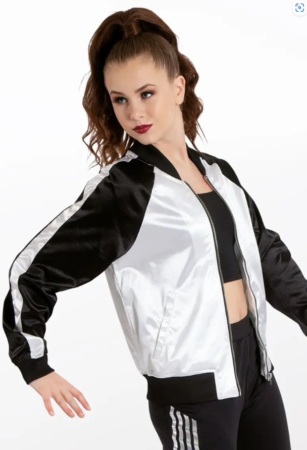 Features: Color Block Long Sleeve Satin Striped Sleeve Satin Bomber