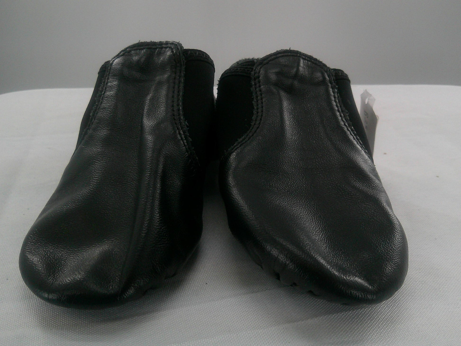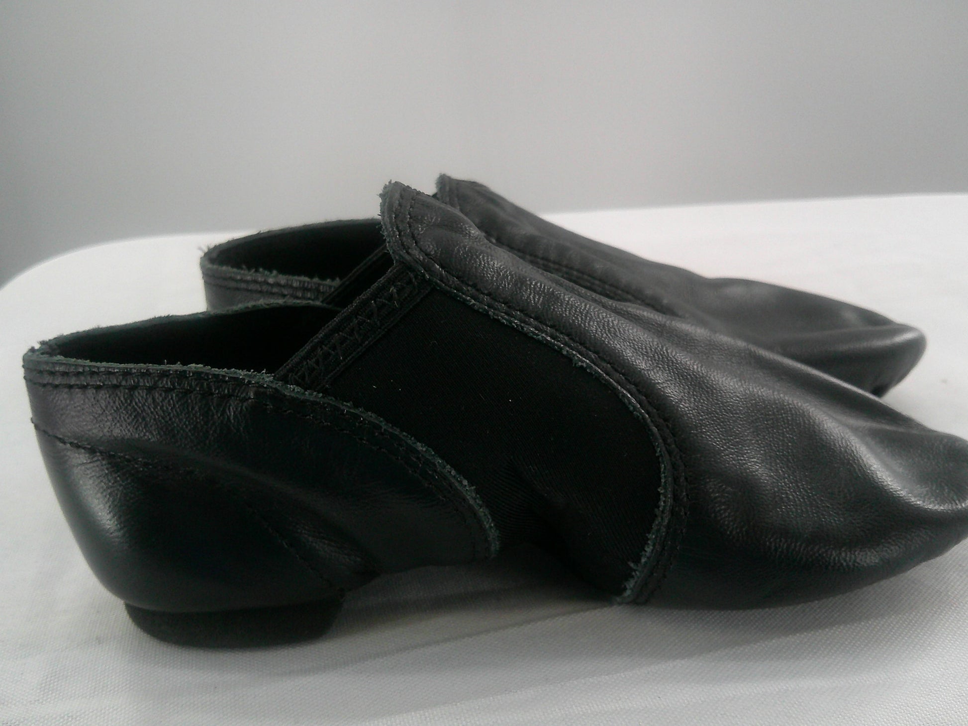 Capezio's "E" series slip-on jazz shoe features a low profile design and is constructed with a soft durable leather. Other features include an EVA outsole patch and heel, Neoprene stretch arch insert and heel counter features an Achilles relief that provides a softer top line.