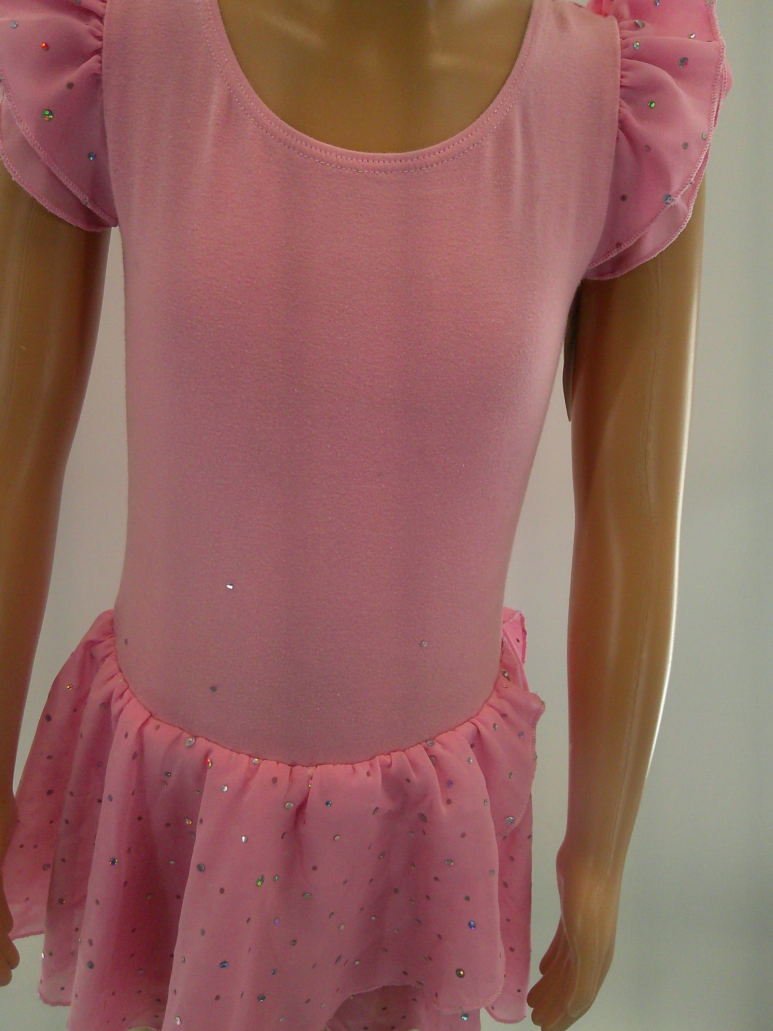 Features: Flutter Sleeve Leotard with Sparkles and Attached sparkle Skirt